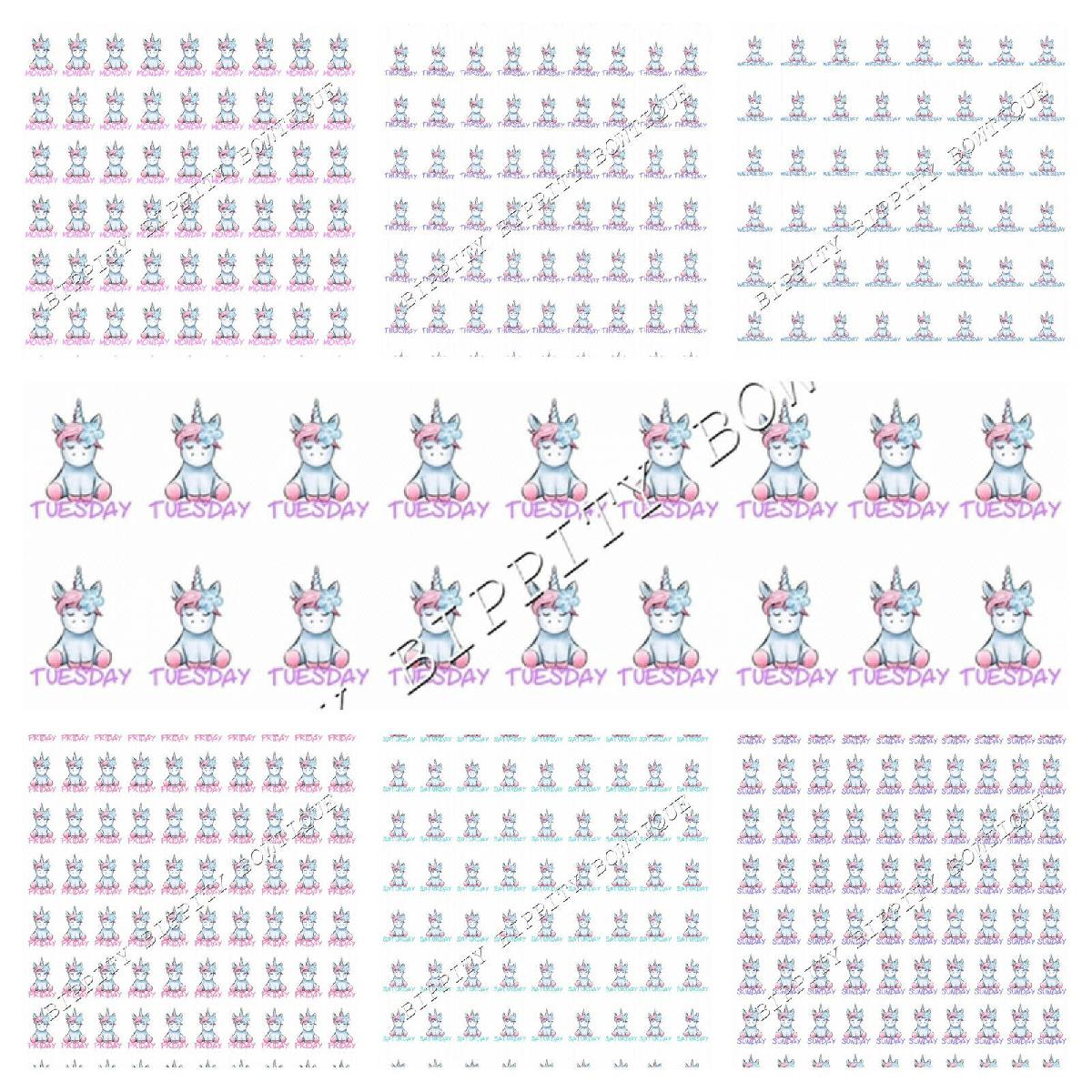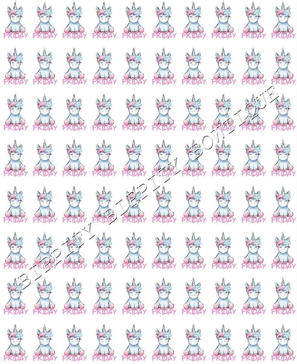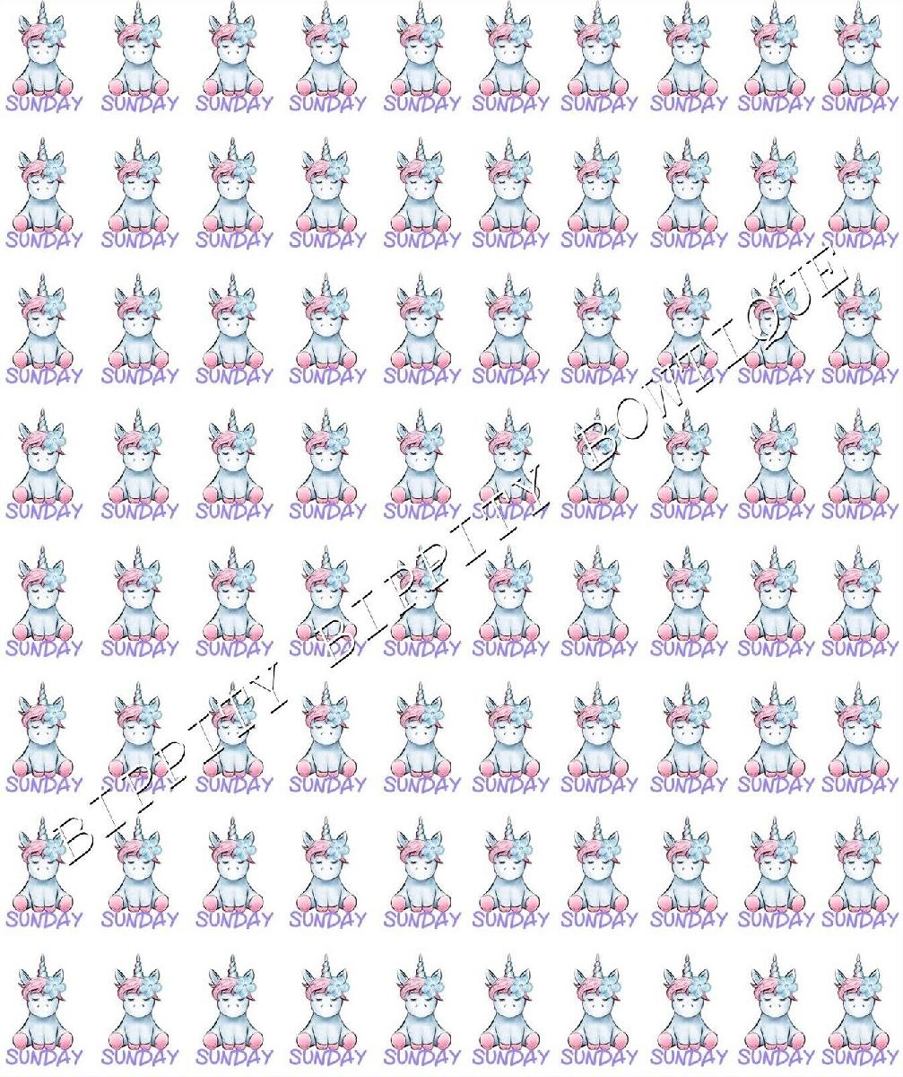 NEW " UNICORN DAYS OF THE WEEK" PRINTED CANVAS FABRIC SHEET..HAIR BOWS CRAFTS [ENDED]