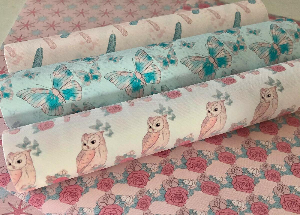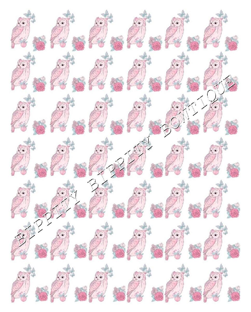 GORGEOUS "PINK OWL" WATERCOLOUR CANVAS PRINTED FABRIC SHEET..HAIR BOWS, CRAFTS [ENDED]