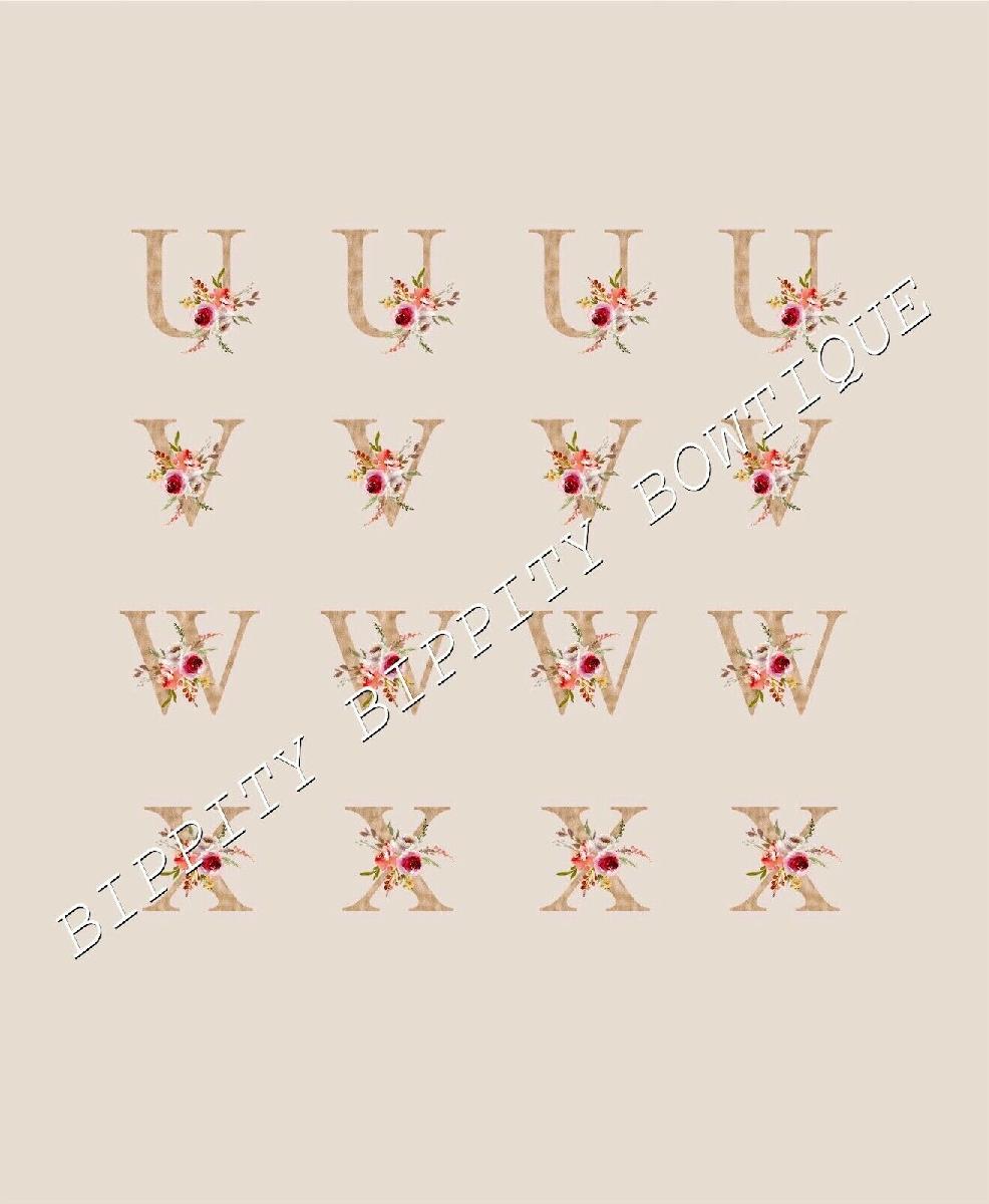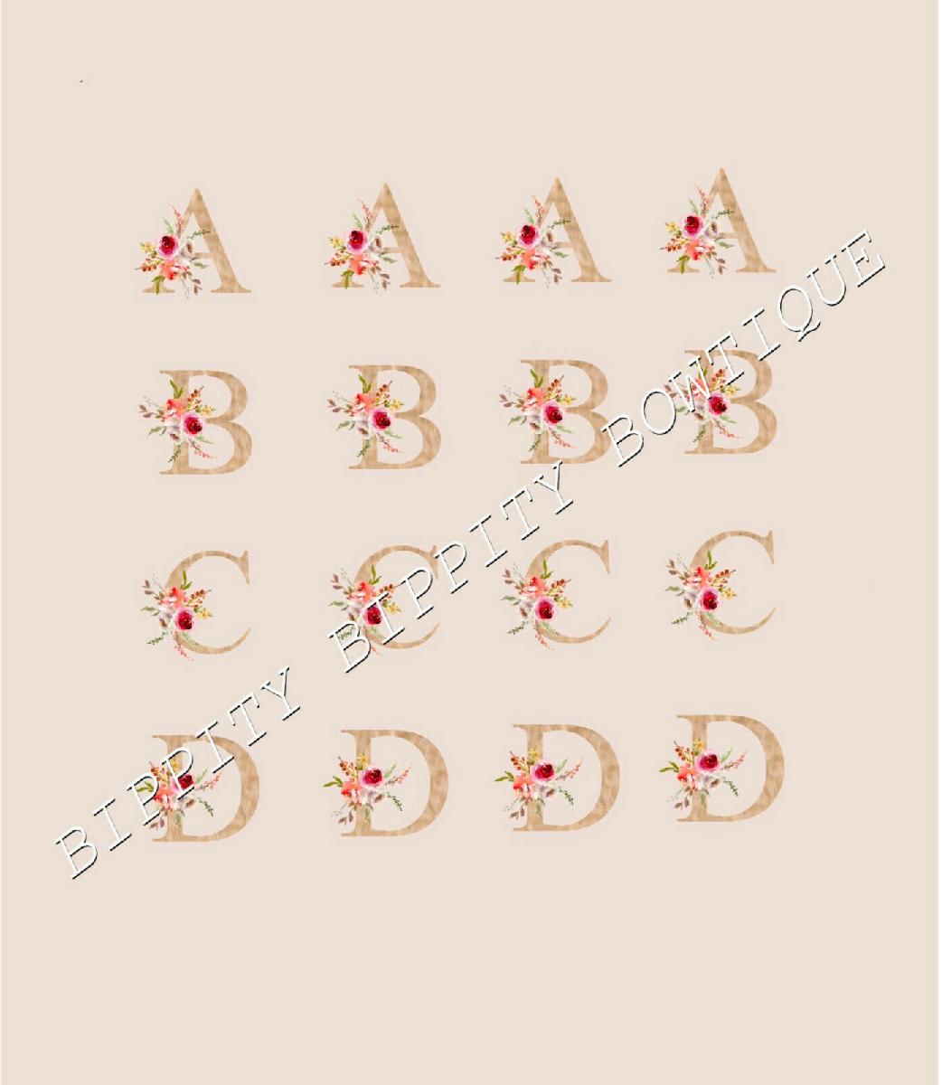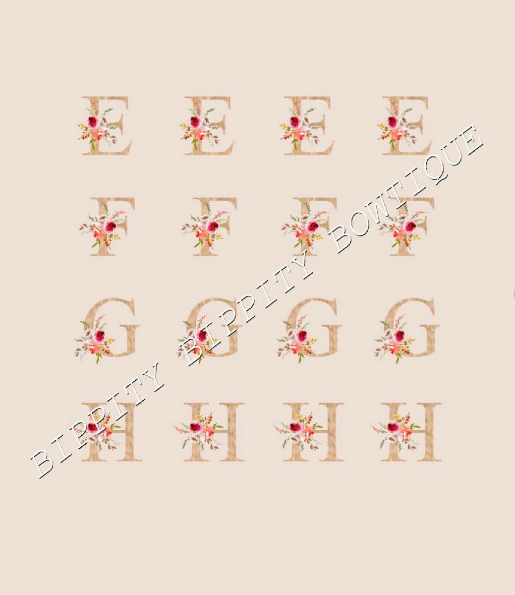 GOLD FLORAL ALPHABET 7 SHEET PACK CANVAS PRINTED FABRIC SHEET HAIR BOWS [ENDED]