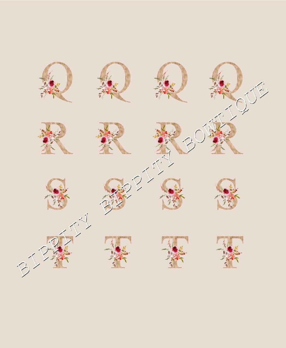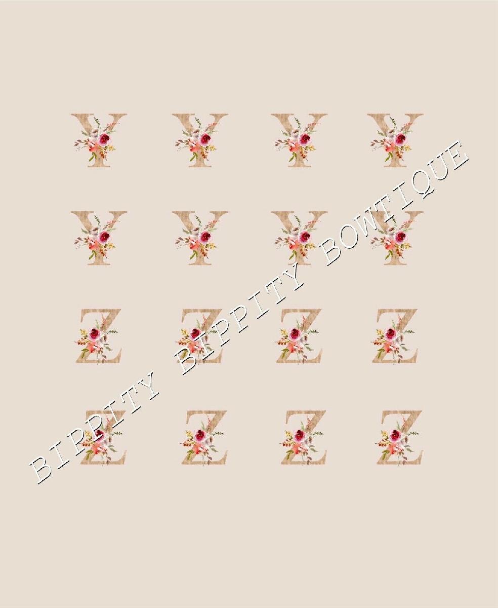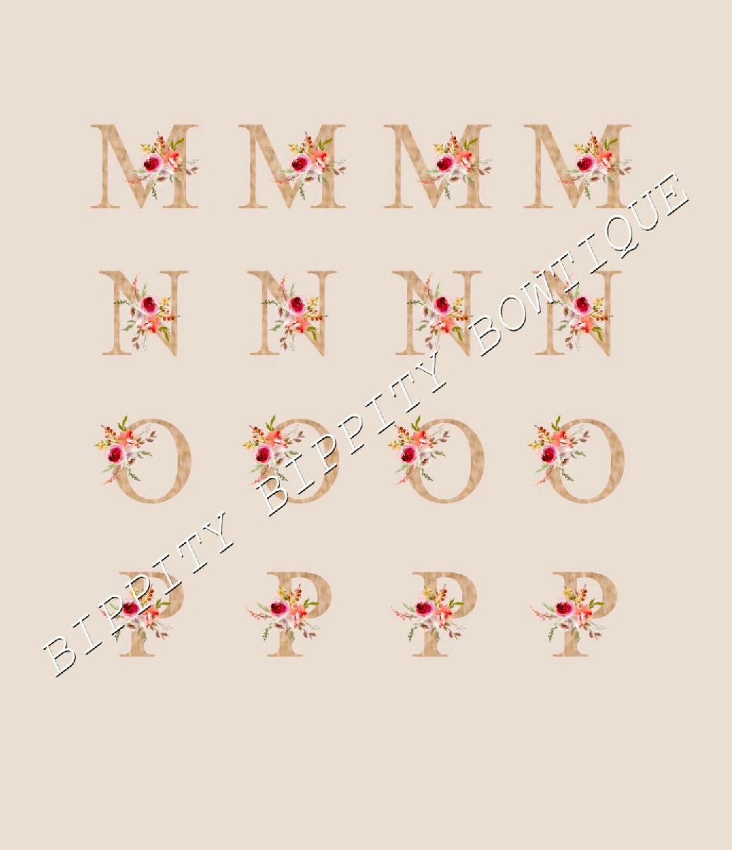 GOLD FLORAL ALPHABET 7 SHEET PACK CANVAS PRINTED FABRIC SHEET HAIR BOWS [ENDED]