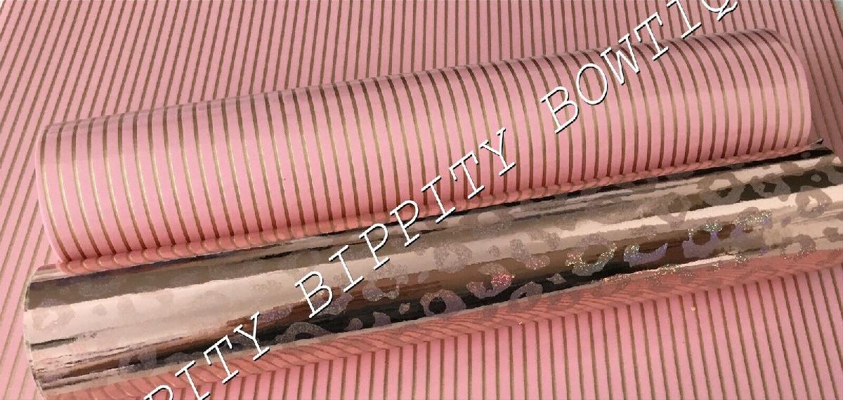 2 PACK "ROSE GOLD LEOPARD/STRIPE" PATENT LEATHERETTE SHEETS CANVAS.HAIR BOWS [ENDED]