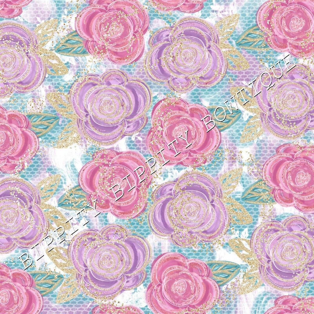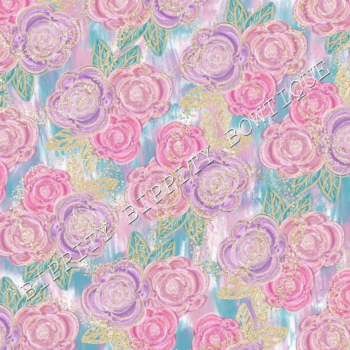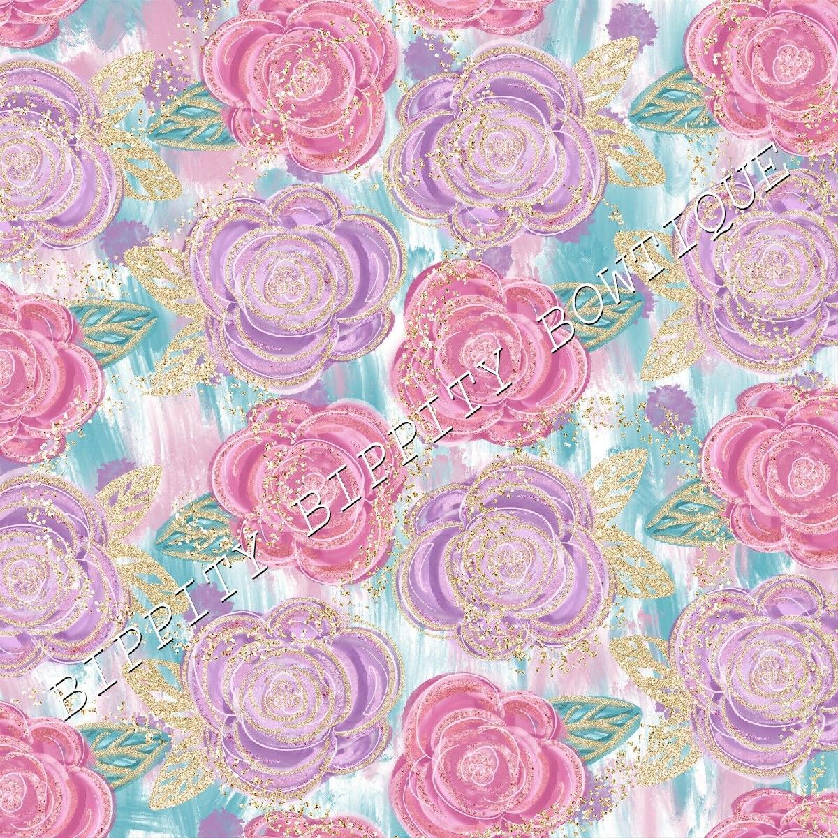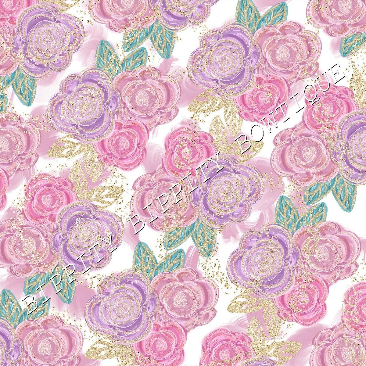 GORGEOUS "PINK PASSION" GOLD FLORAL CANVAS PRINTED FABRIC SHEET..HAIR BOWS.. [ENDED]