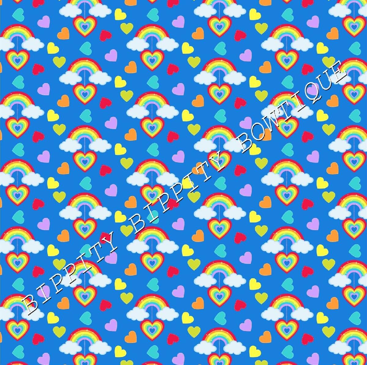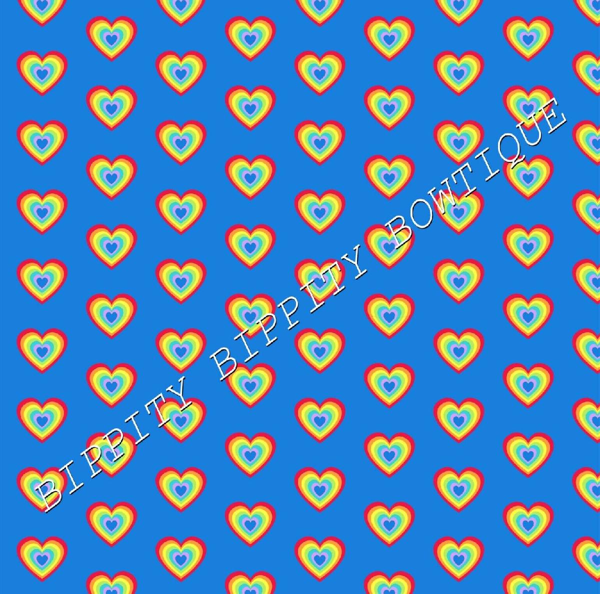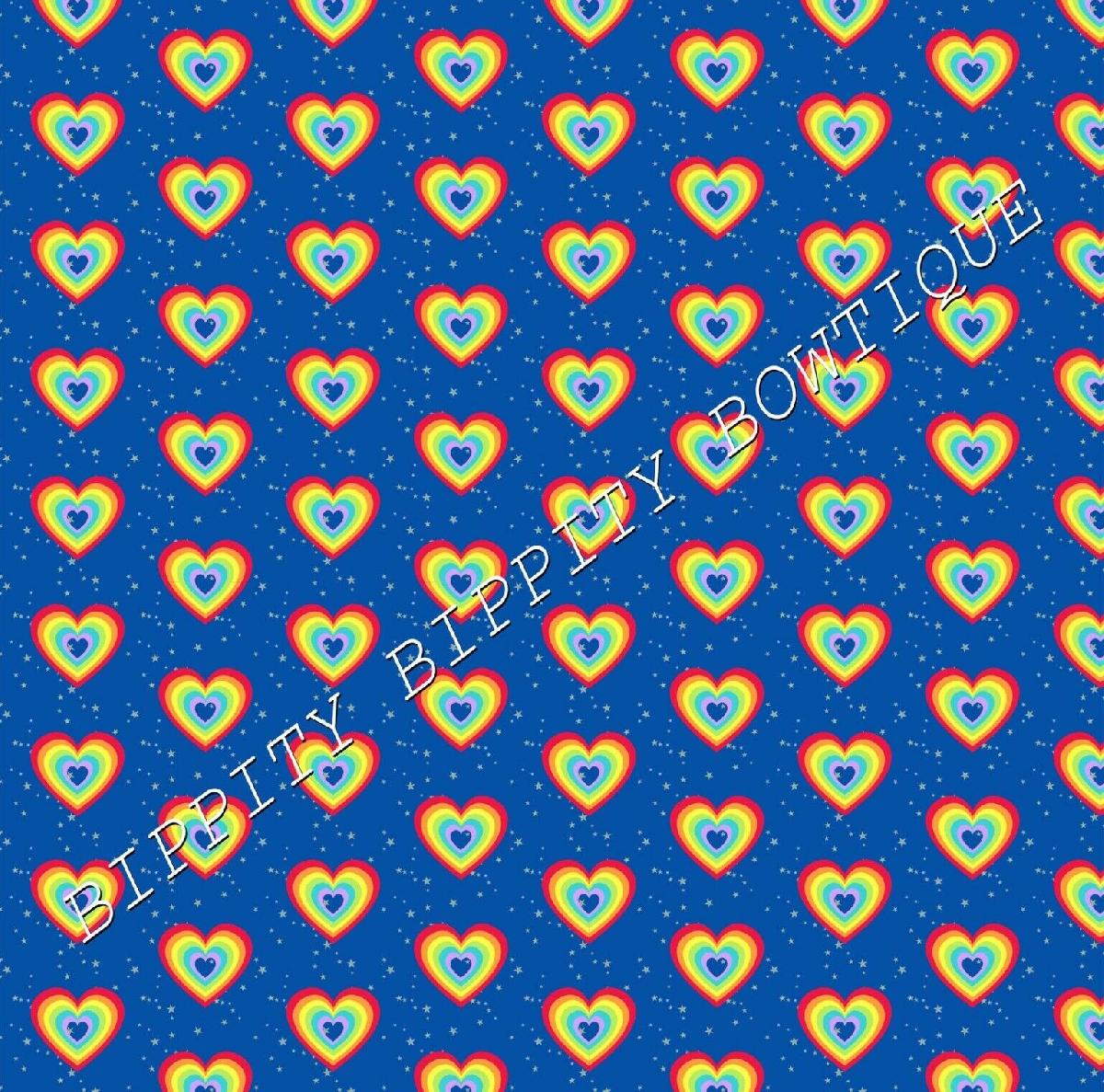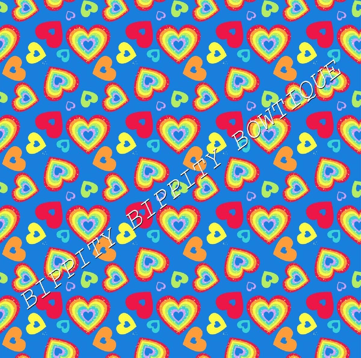 GORGEOUS "MAGICAL RAINBOW HEARTS" BRIGHTS CANVAS PRINTED FABRIC .HAIR BOWS, [ENDED]