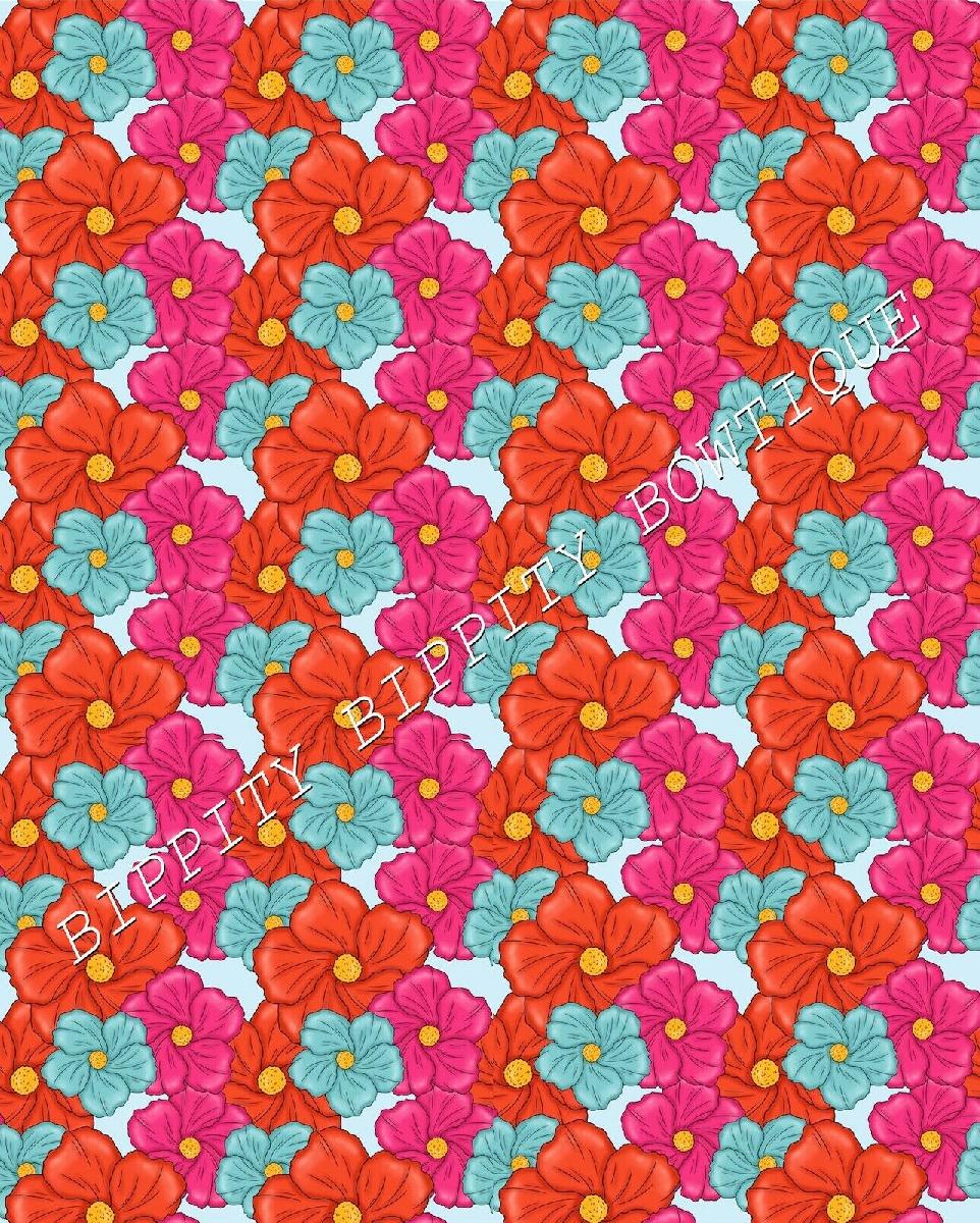 GORGEOUS "BRIGHT TROPICAL FLORAL" CANVAS PRINTED FABRIC SHEET..HAIR BOWS, [ENDED]