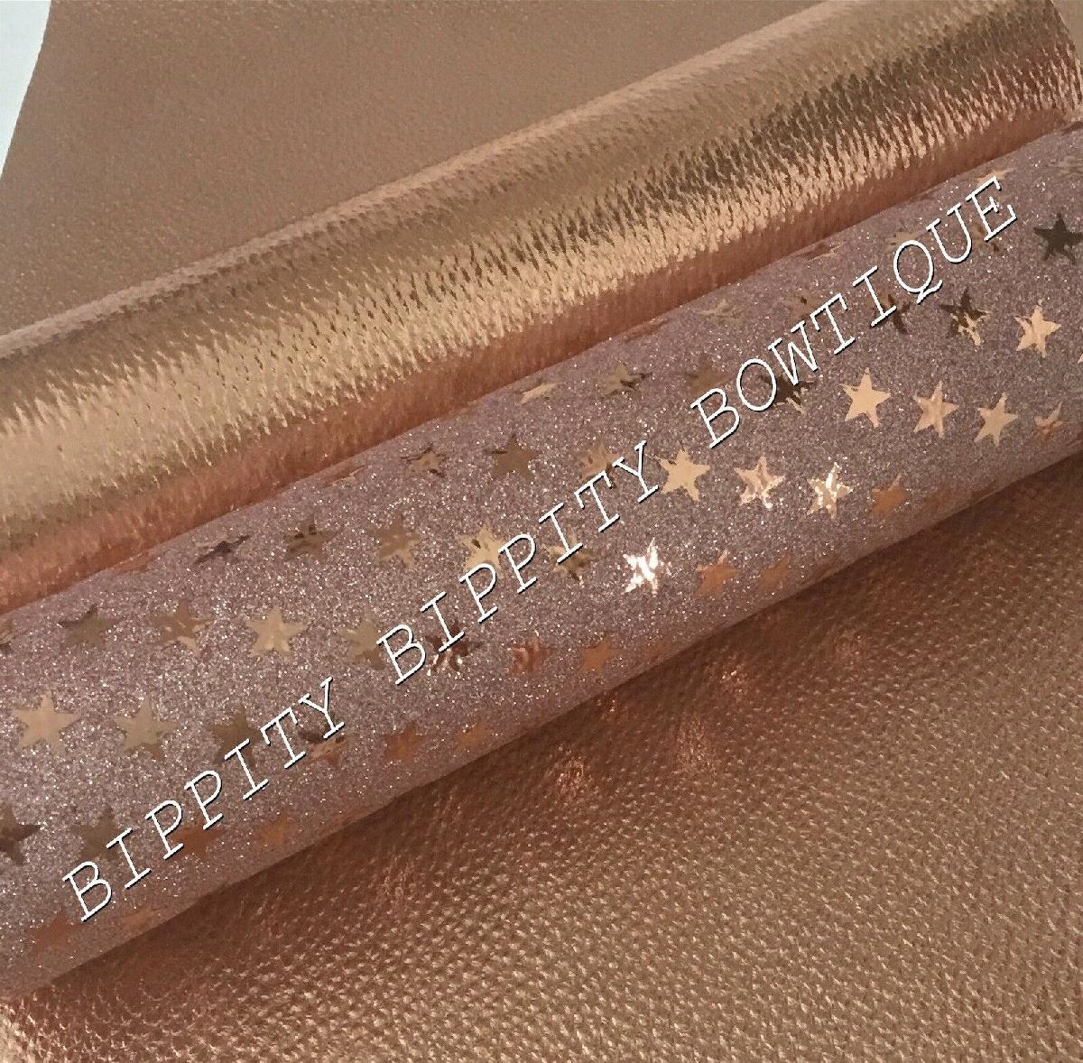2 PACK "ROSE GOLD GLITTER STARS" PRINTED LEATHERETTE SHEET CANVAS.HAIR BOWS [ENDED]
