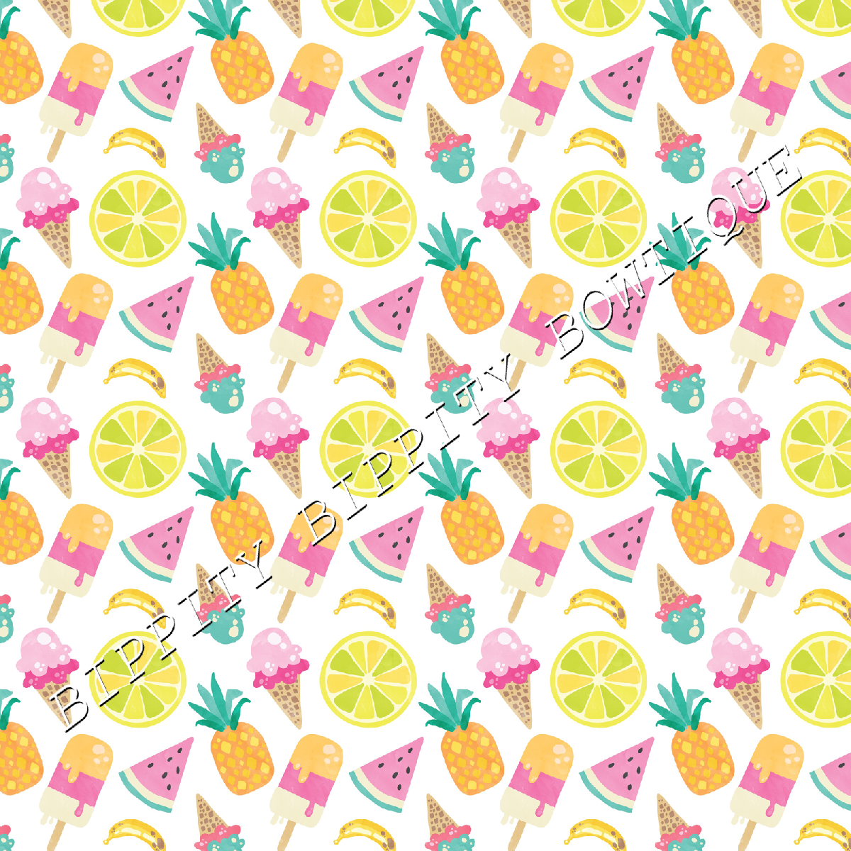 GORGEOUS "TROPICAL FRUITS" SUMMER PRINTED FABRIC SHEET..HAIR BOWS,GLITTER.. [ENDED]