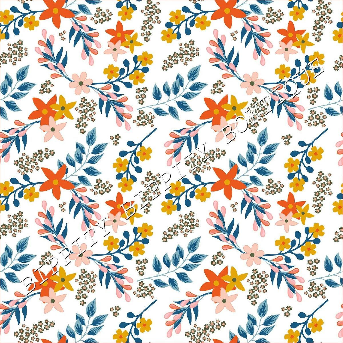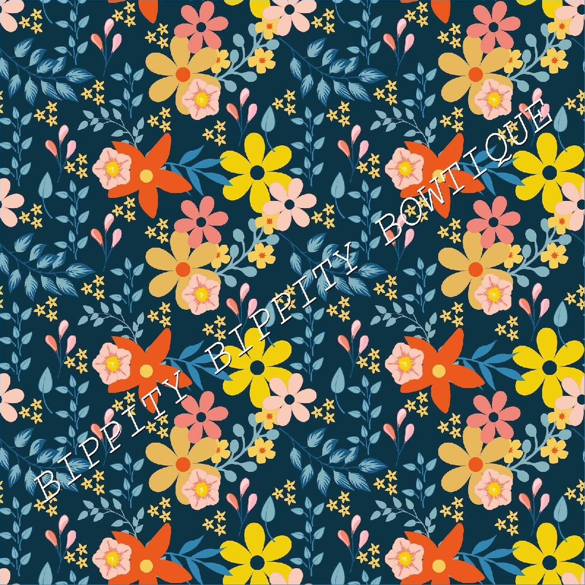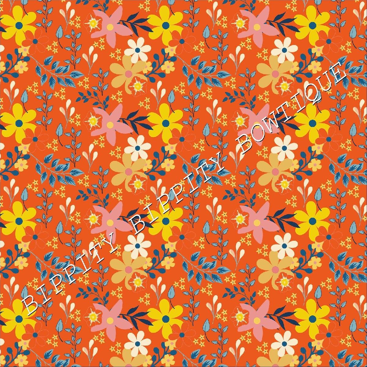 GORGEOUS "ORANGE/BLUE " FLORAL CANVAS PRINTED FABRIC SHEET..HAIR BOWS, CRAFTS [ENDED]