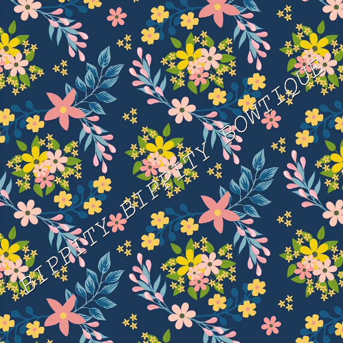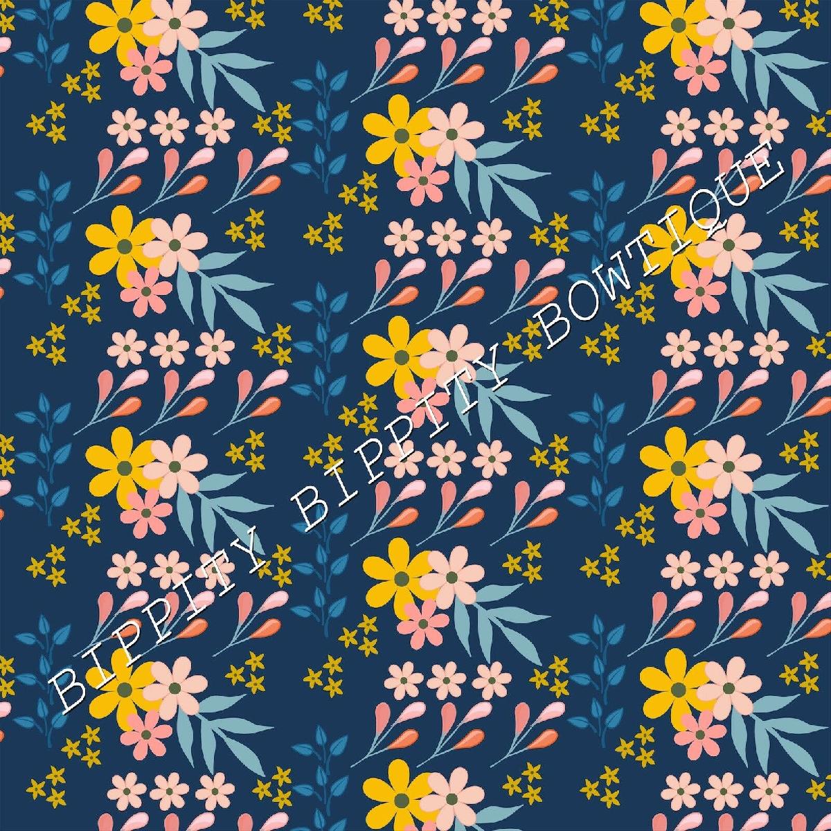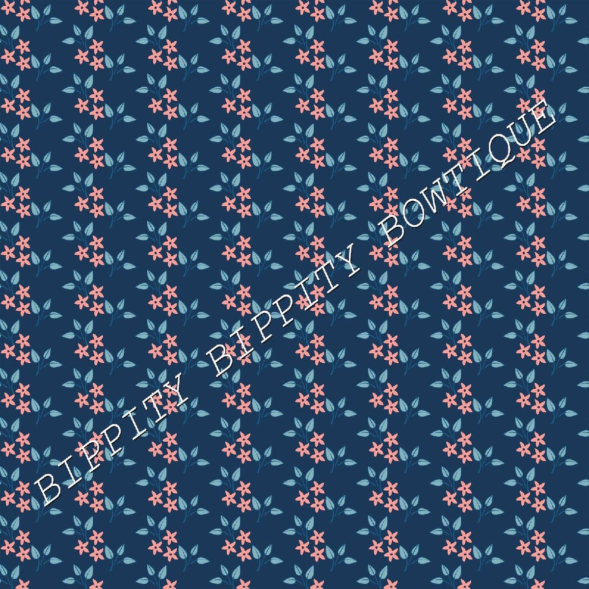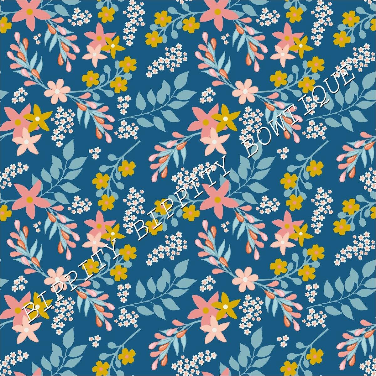 GORGEOUS "ORANGE/BLUE " FLORAL CANVAS PRINTED FABRIC SHEET..HAIR BOWS, CRAFTS [ENDED]