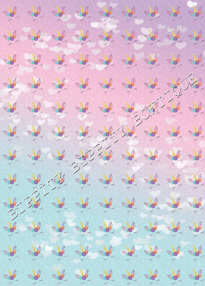 GORGEOUS "OMBRE UNICORN" PRINTED CANVAS FABRIC SHEET.HAIR BOWS E.T.C [ENDED]
