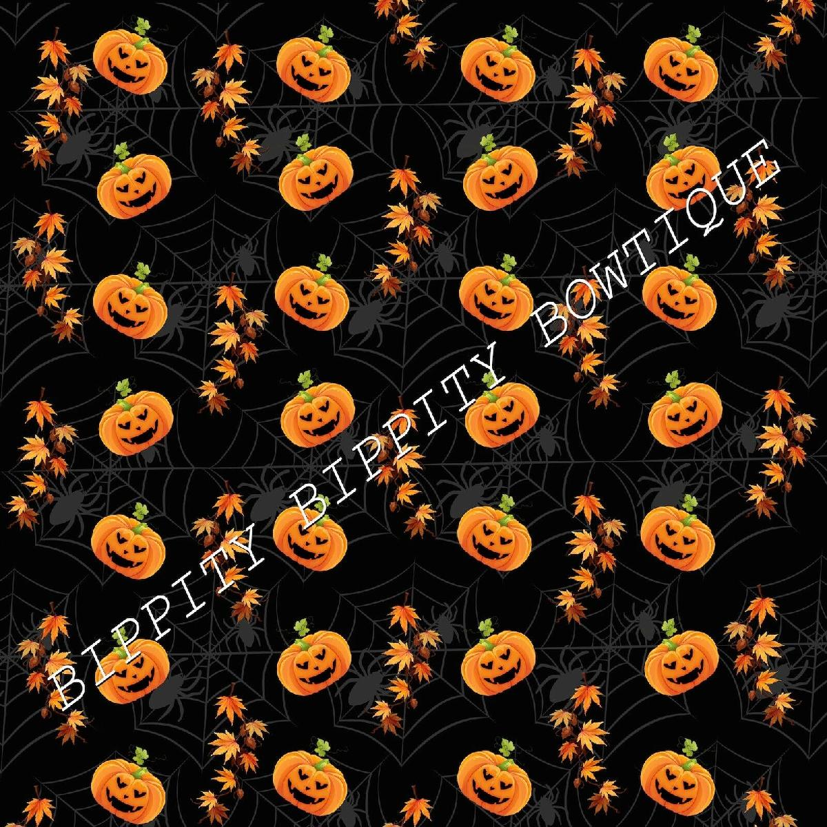 GORGEOUS "FLORAL PUMPKINS" HALLOWEEN PRINTED CANVAS FABRIC SHEET..HAIR BOWS [ENDED]
