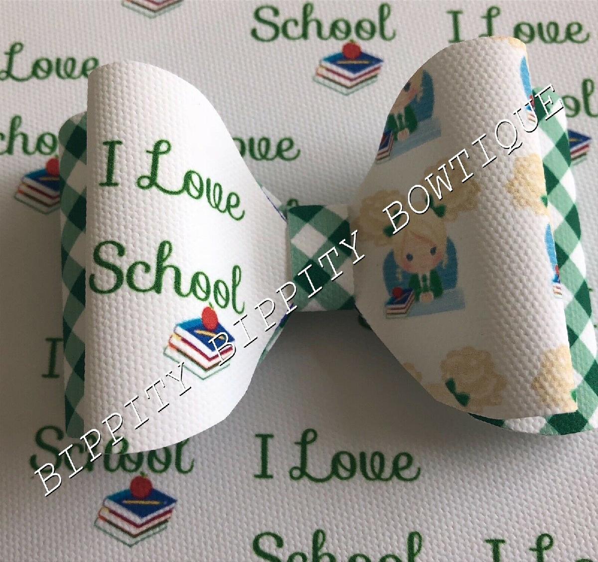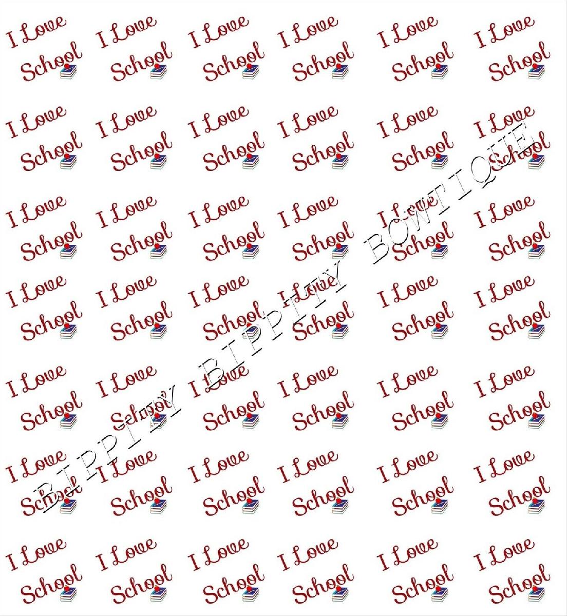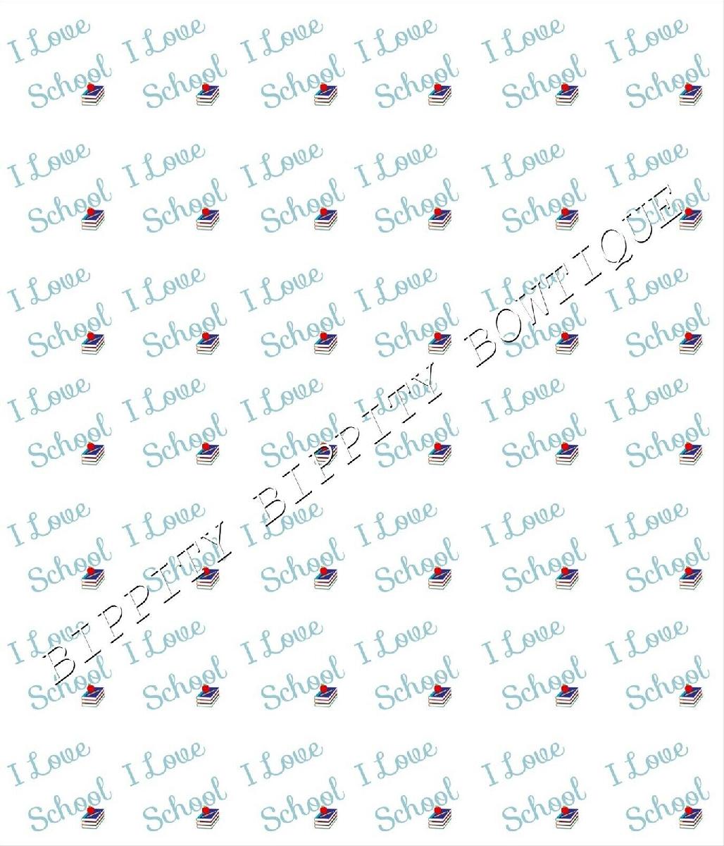 BRAND NEW "I LOVE SCHOOL" CANVAS PRINTED FABRIC SHEET..BOWS..EXCLUSIVE.. [ENDED]