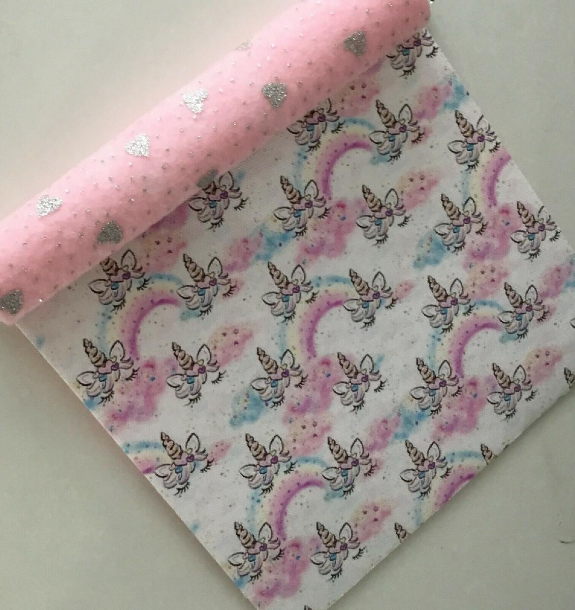 BRAND NEW "LUXURY UNICORN" FELT BACKED FABRIC SHEET..HAIR BOWS, GLITTER, [ENDED]