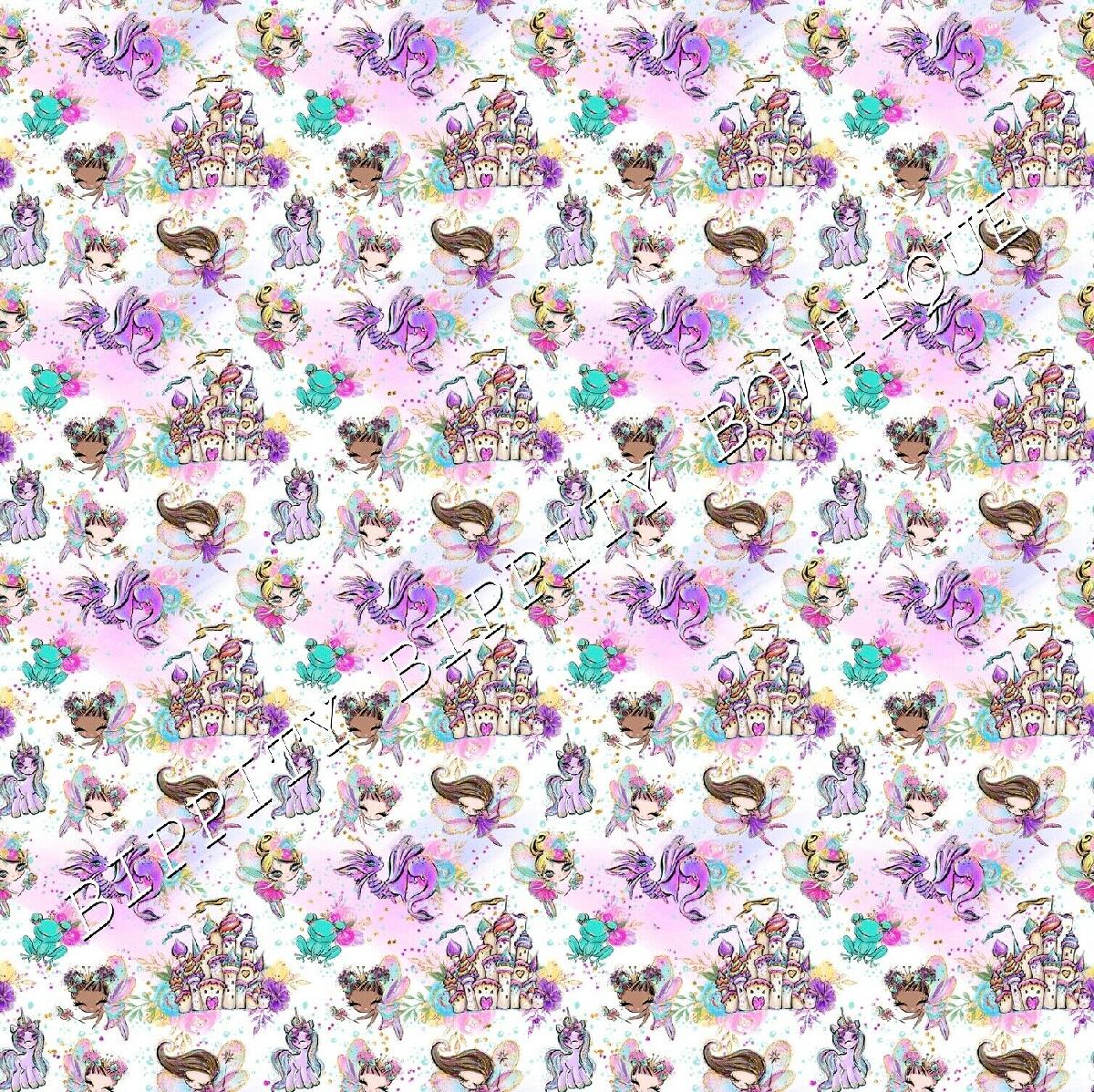 GORGEOUS "FANTASY FAIRIES & UNICORNS" CANVAS PRINTED FABRIC SHEET..HAIR BOWS, [ENDED]
