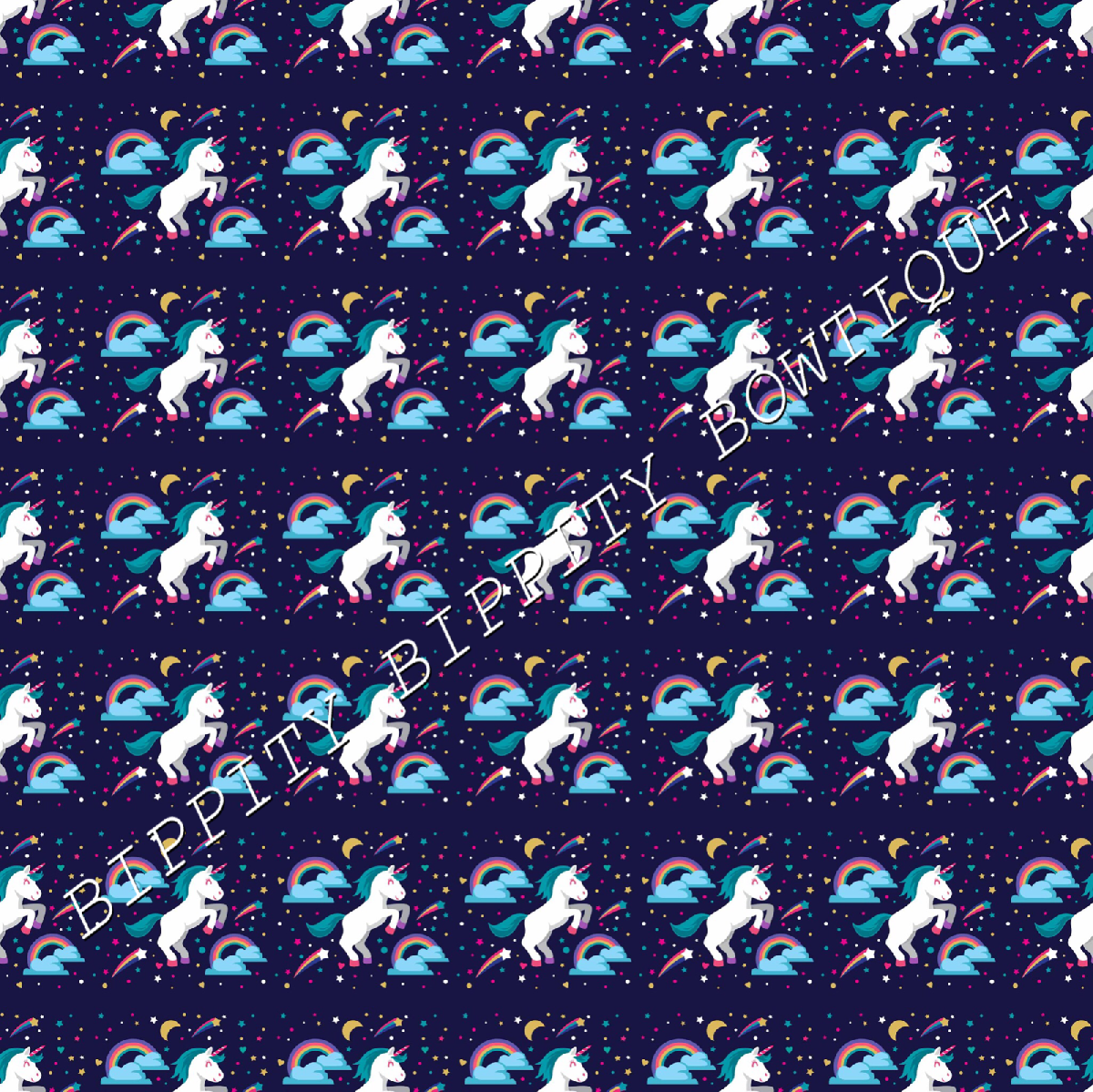 GORGEOUS "ENCHANTED DREAMS UNICORNS" PRINTED FABRIC SHEET..HAIR BOWS, GLITTER, [ENDED]