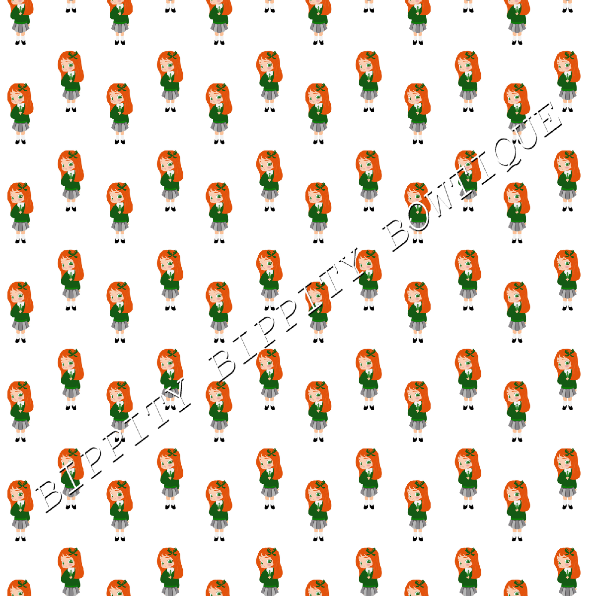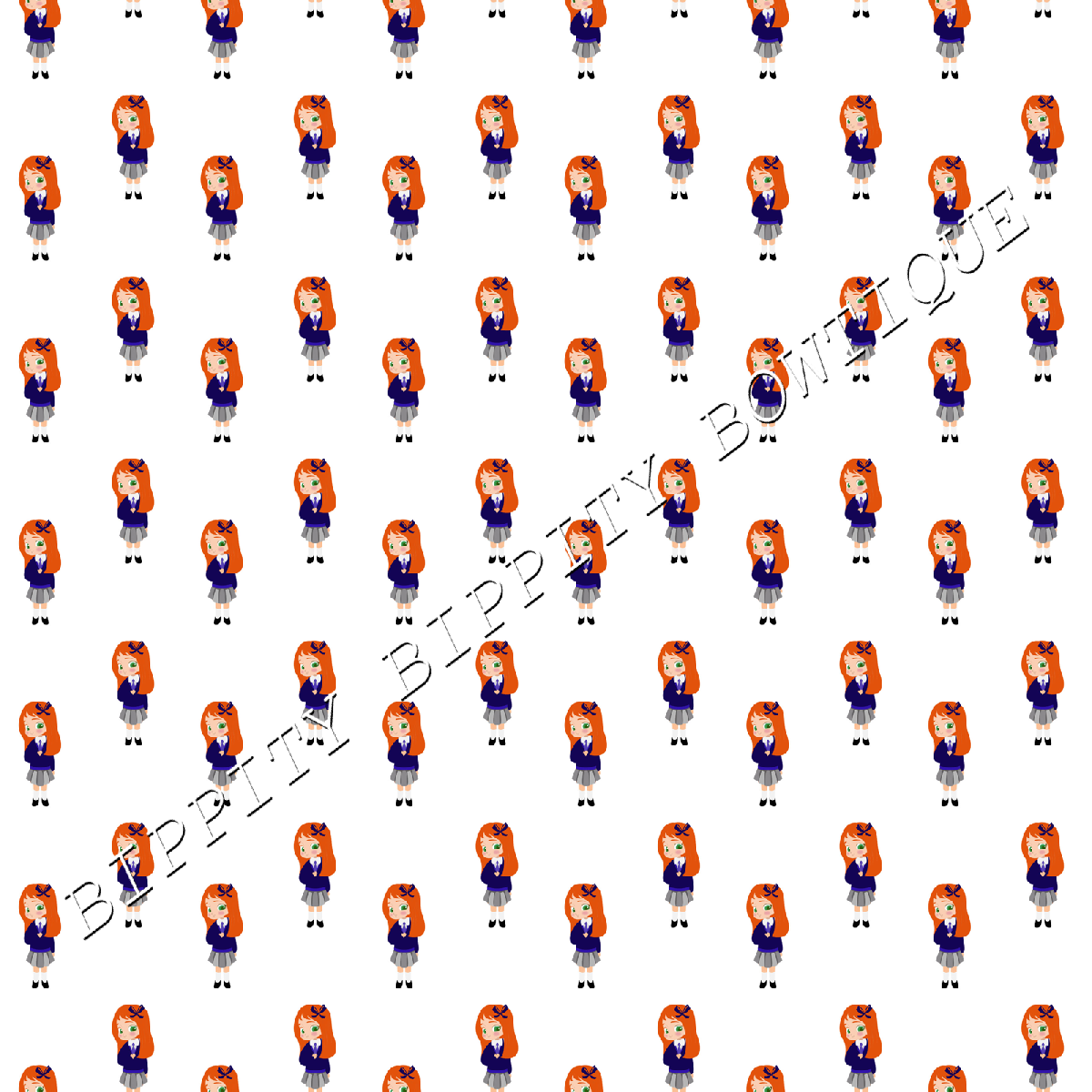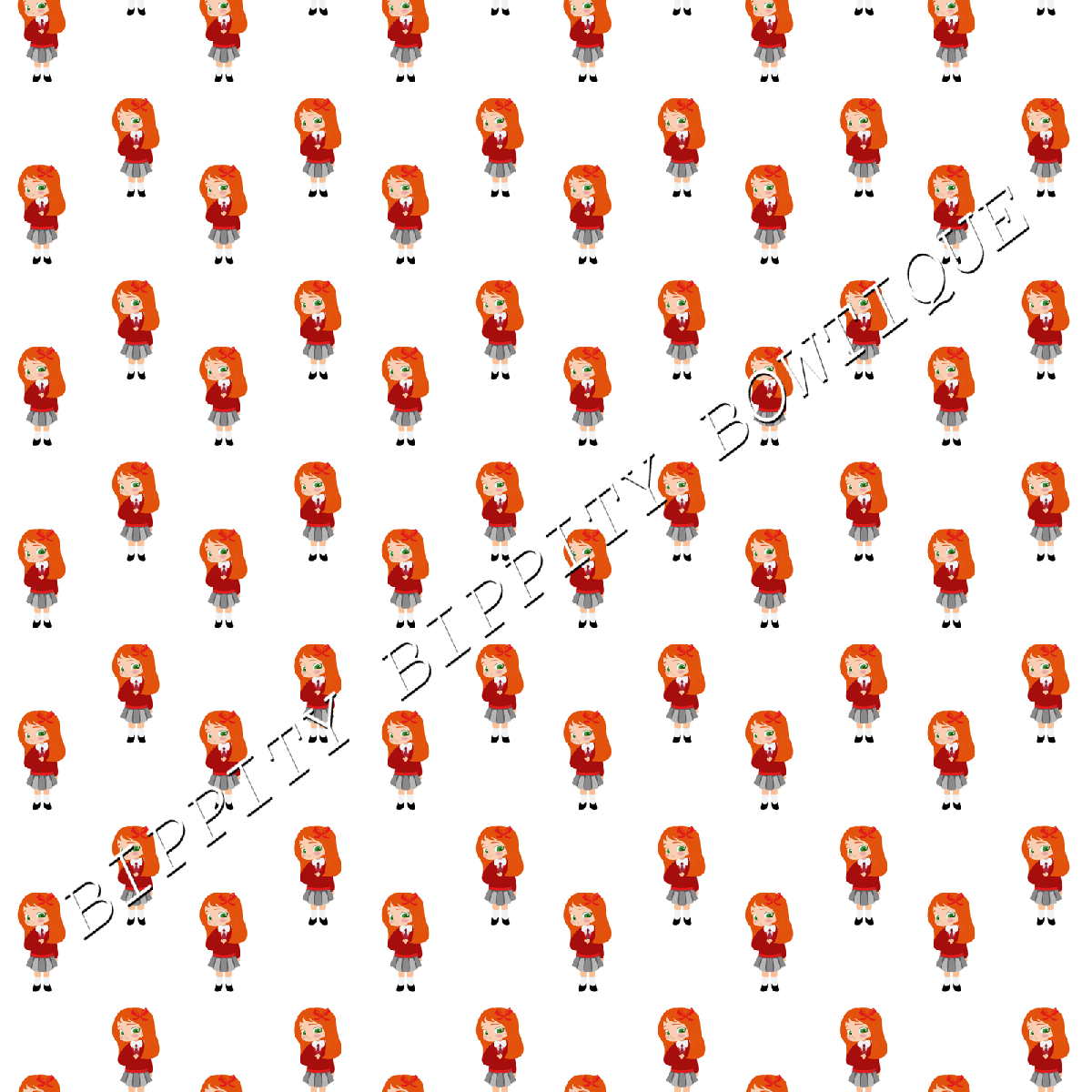 GORGEOUS "SCHOOL GIRL" RED/GINGER HAIR CANVAS PRINTED FABRIC SHEET.. BOWS CRAFTS [ENDED]
