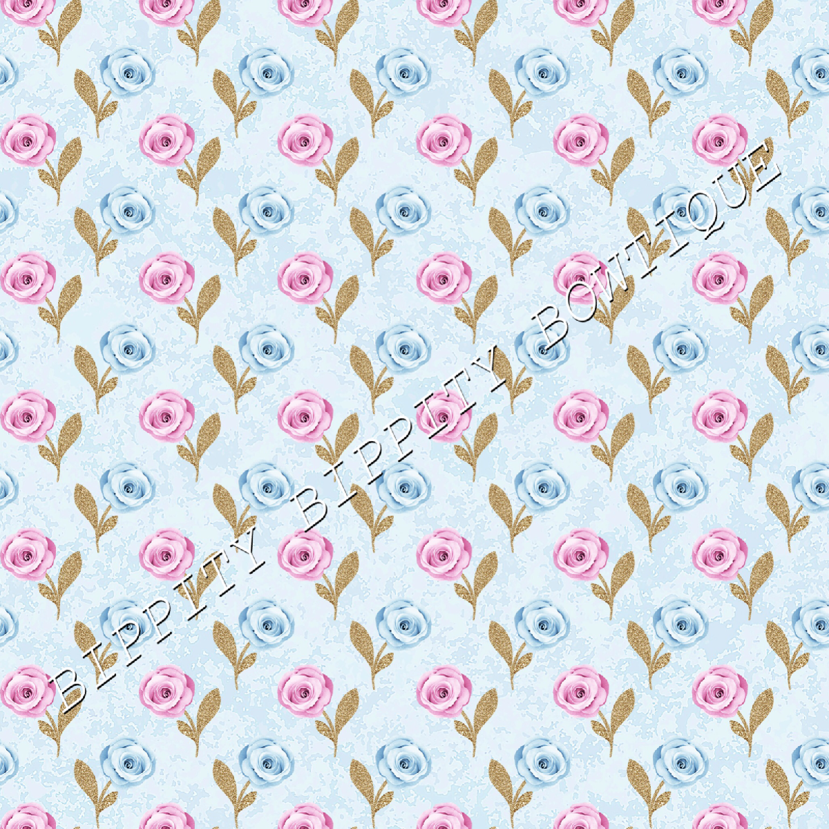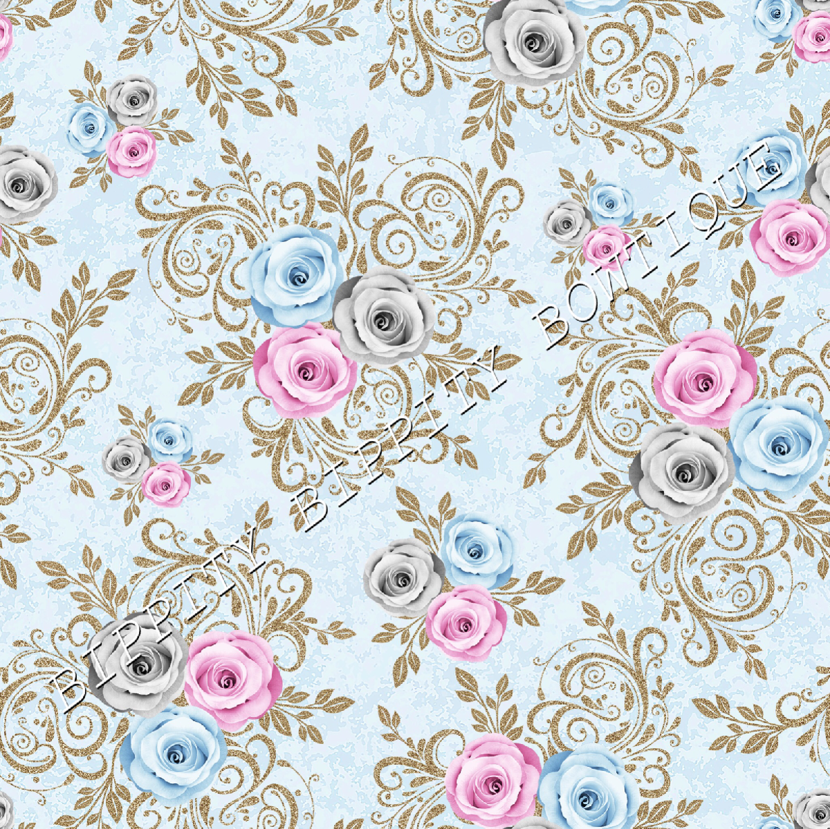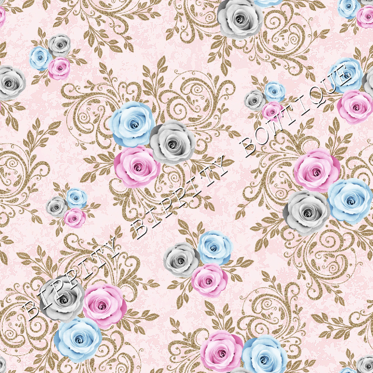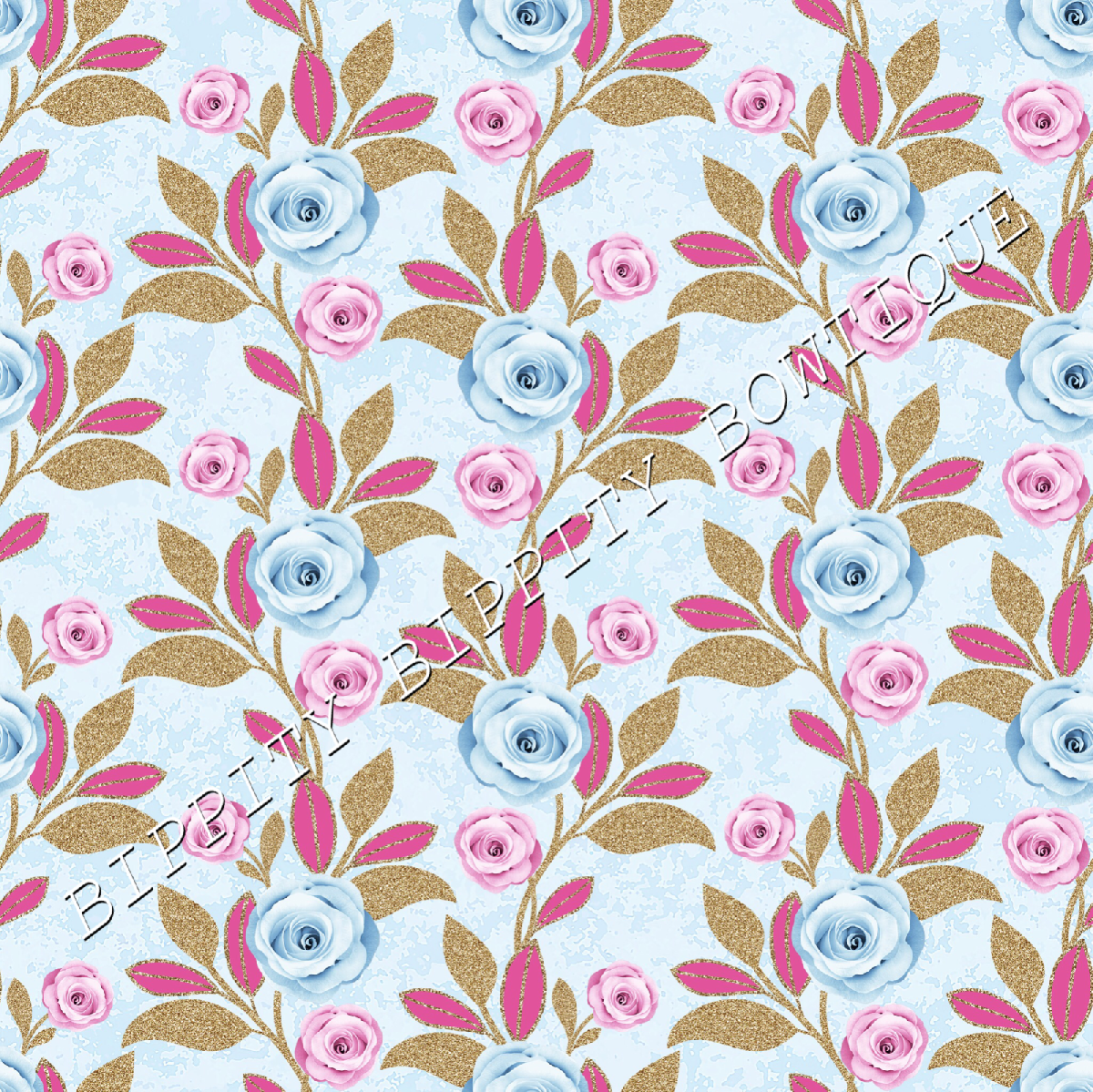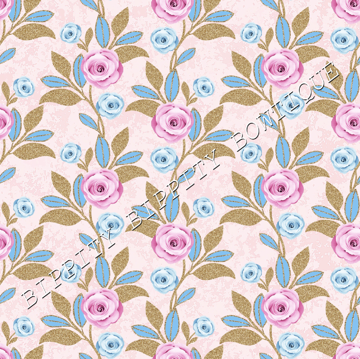 GORGEOUS "WINTER BLUE"FLORAL PRINTED FABRIC SHEET..HAIR BOWS, GLITTER, [ENDED]