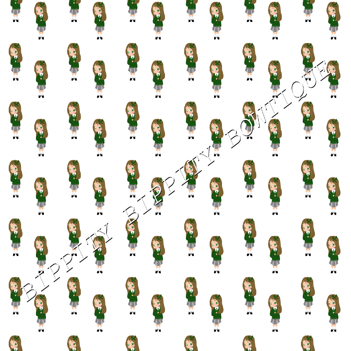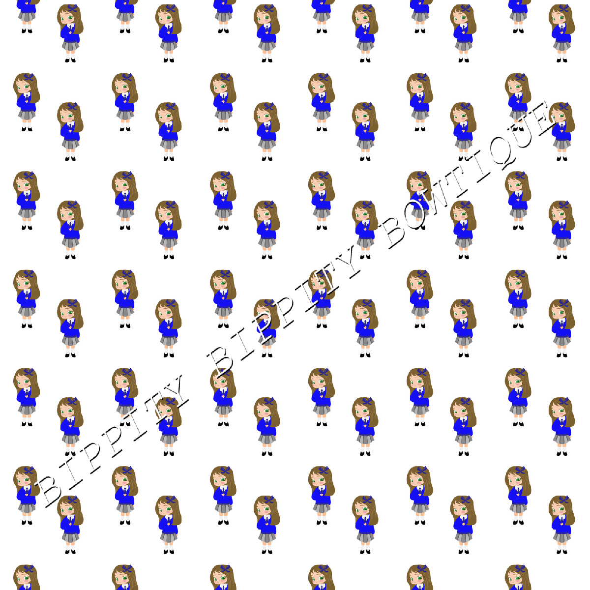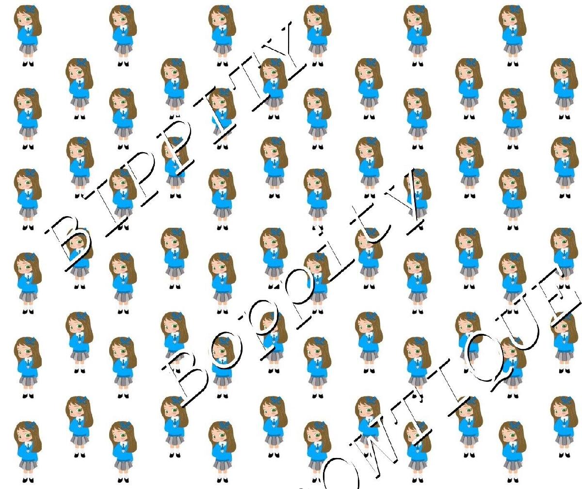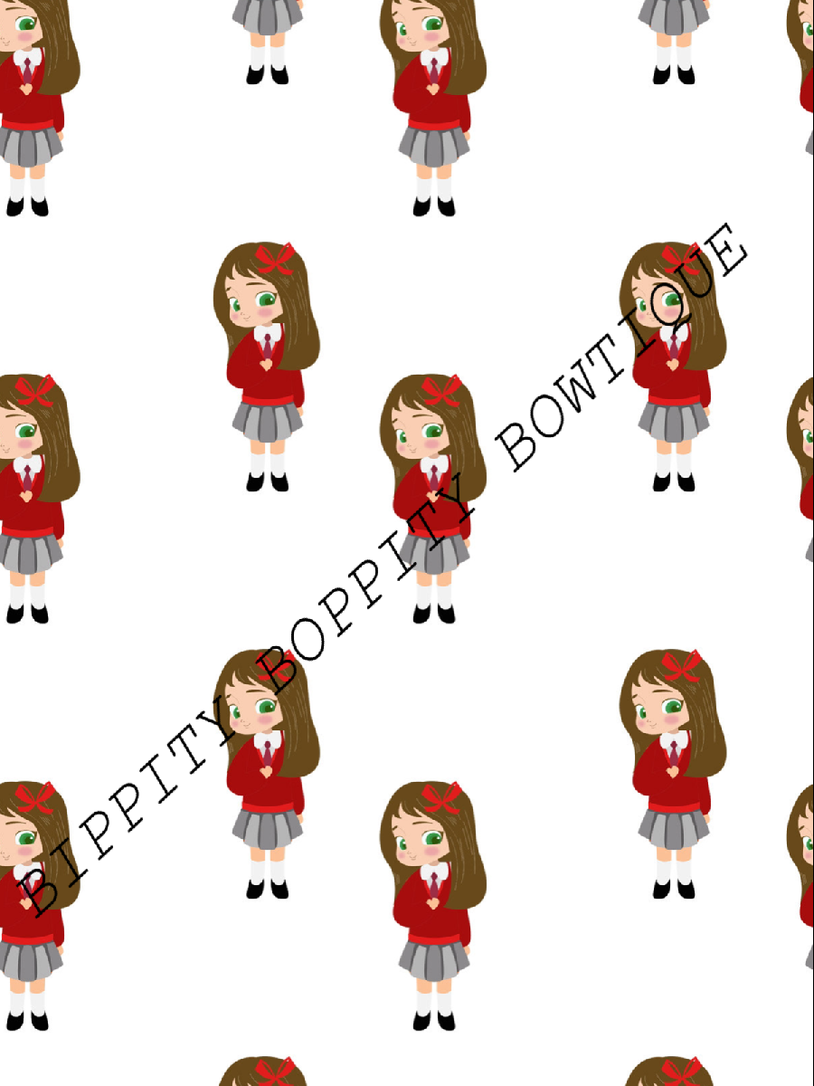 GORGEOUS "SCHOOL GIRL" BROWN HAIR CANVAS PRINTED FABRIC SHEET.. BOWS CRAFTS [ENDED]