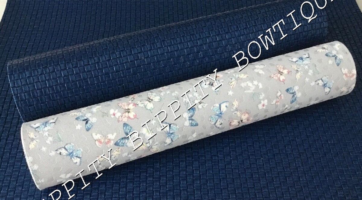 2 PACK "NAVY/GREY BUTTERFLIES " PRINTED LEATHERETTE SHEETS CANVAS.HAIR BOWS [ENDED]