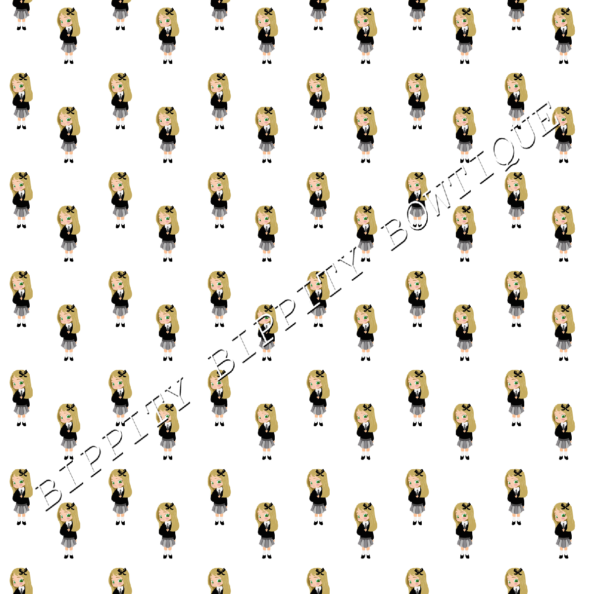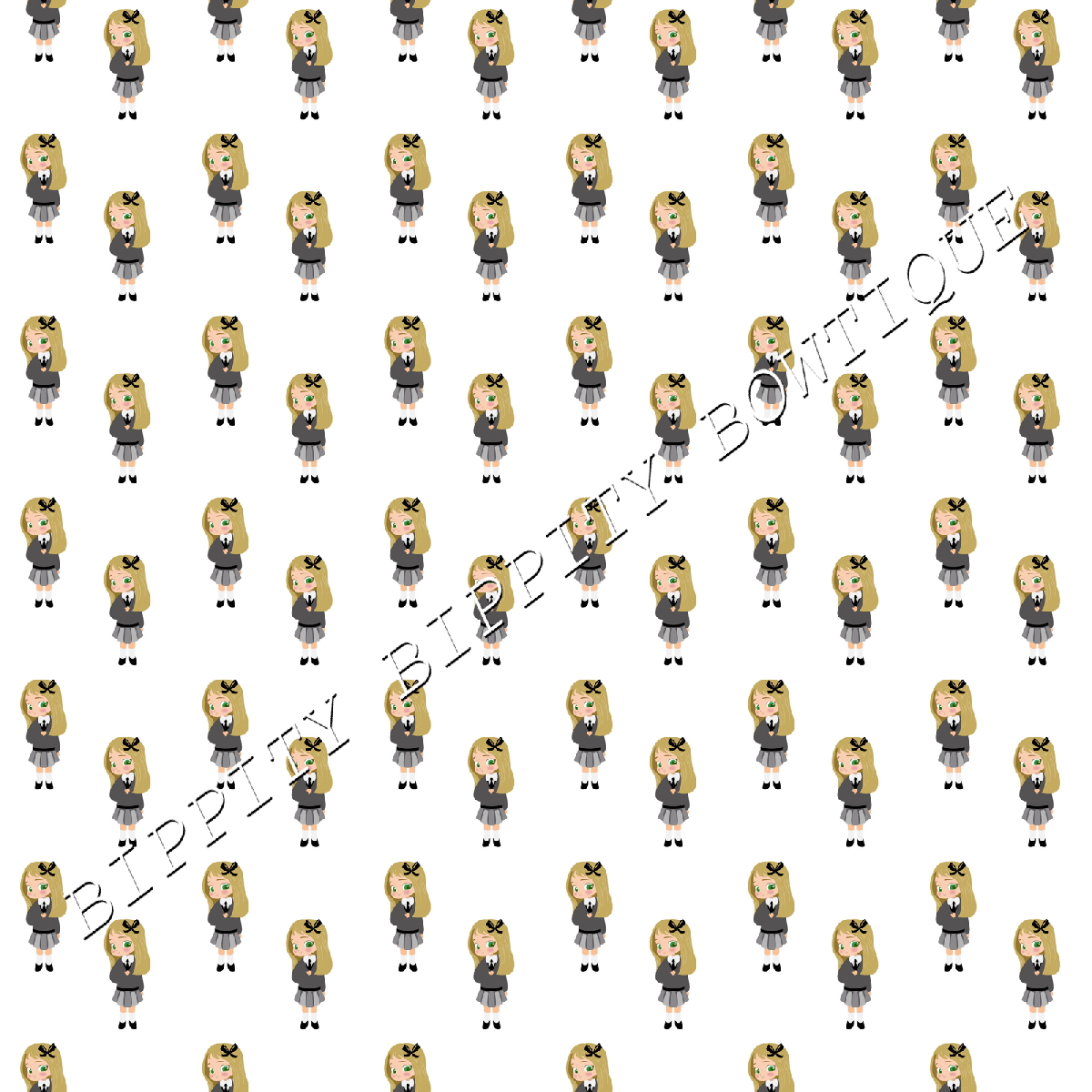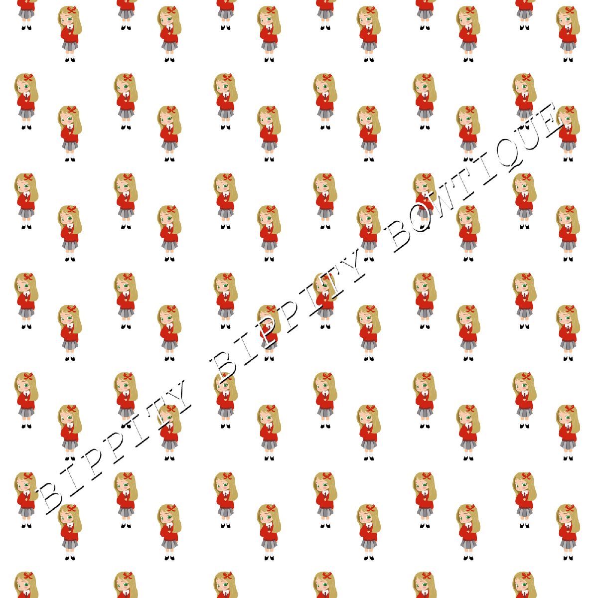 GORGEOUS "SCHOOL GIRL" BLONDE HAIR CANVAS PRINTED FABRIC SHEET.. BOWS CRAFTS [ENDED]
