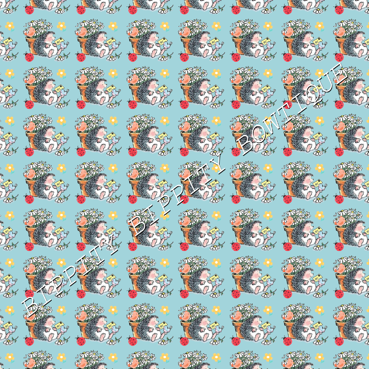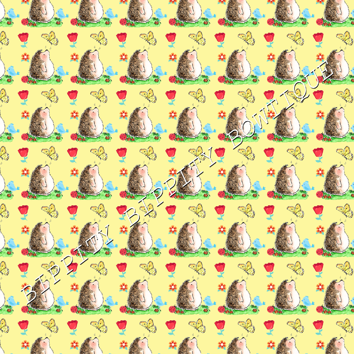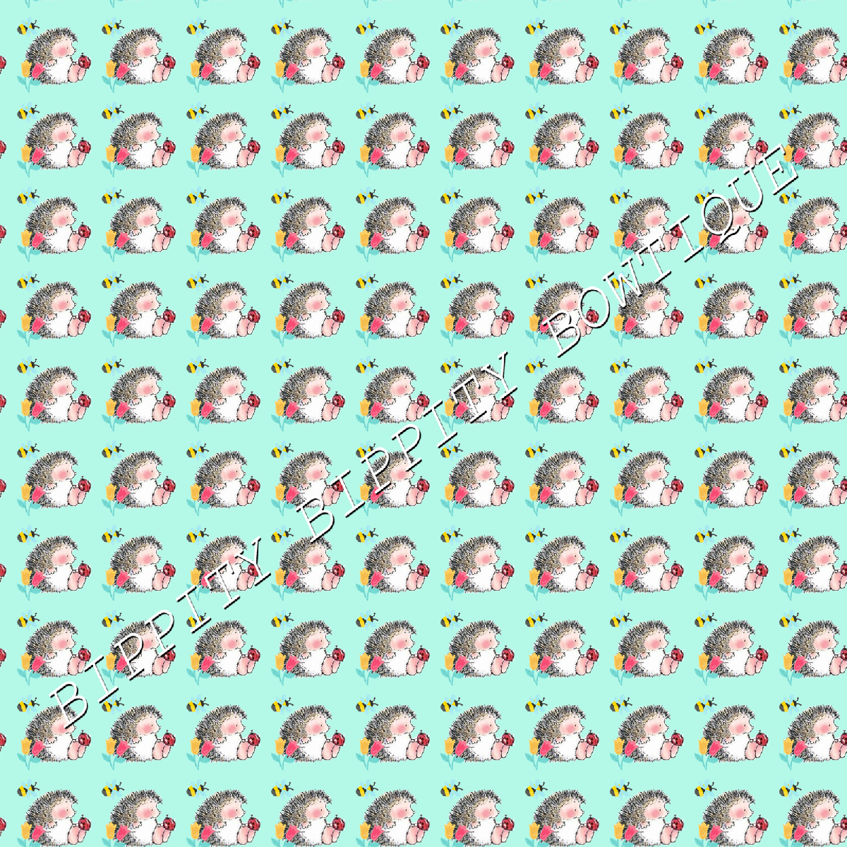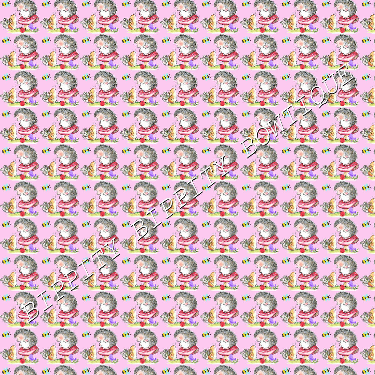 GORGEOUS "CUTE HEDGEHOGS" PRINTED FABRIC SHEET..HAIR BOWS, GLITTER, EXCLUSIVE [ENDED]