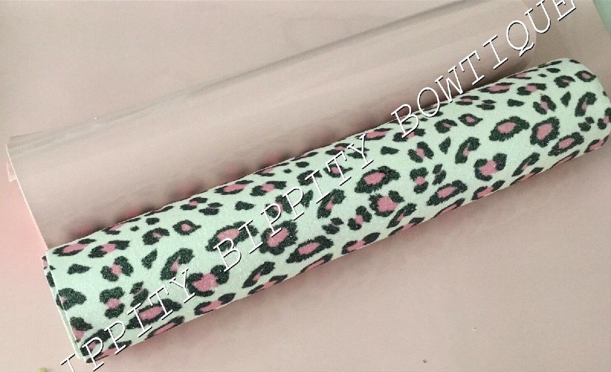 2 PACK "PINK GLITTER LEOPARD PRINT" PRINTED LEATHERETTE SHEETS CANVAS.HAIR BOWS [ENDED]