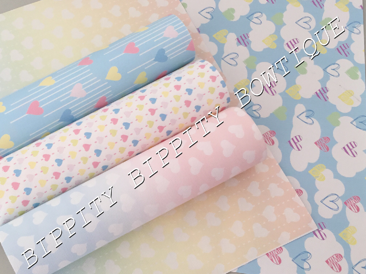 GORGEOUS " PASTEL HEARTS" CANVAS PRINTED FABRIC SHEET..HAIR BOWS, CRAFTS [ENDED]