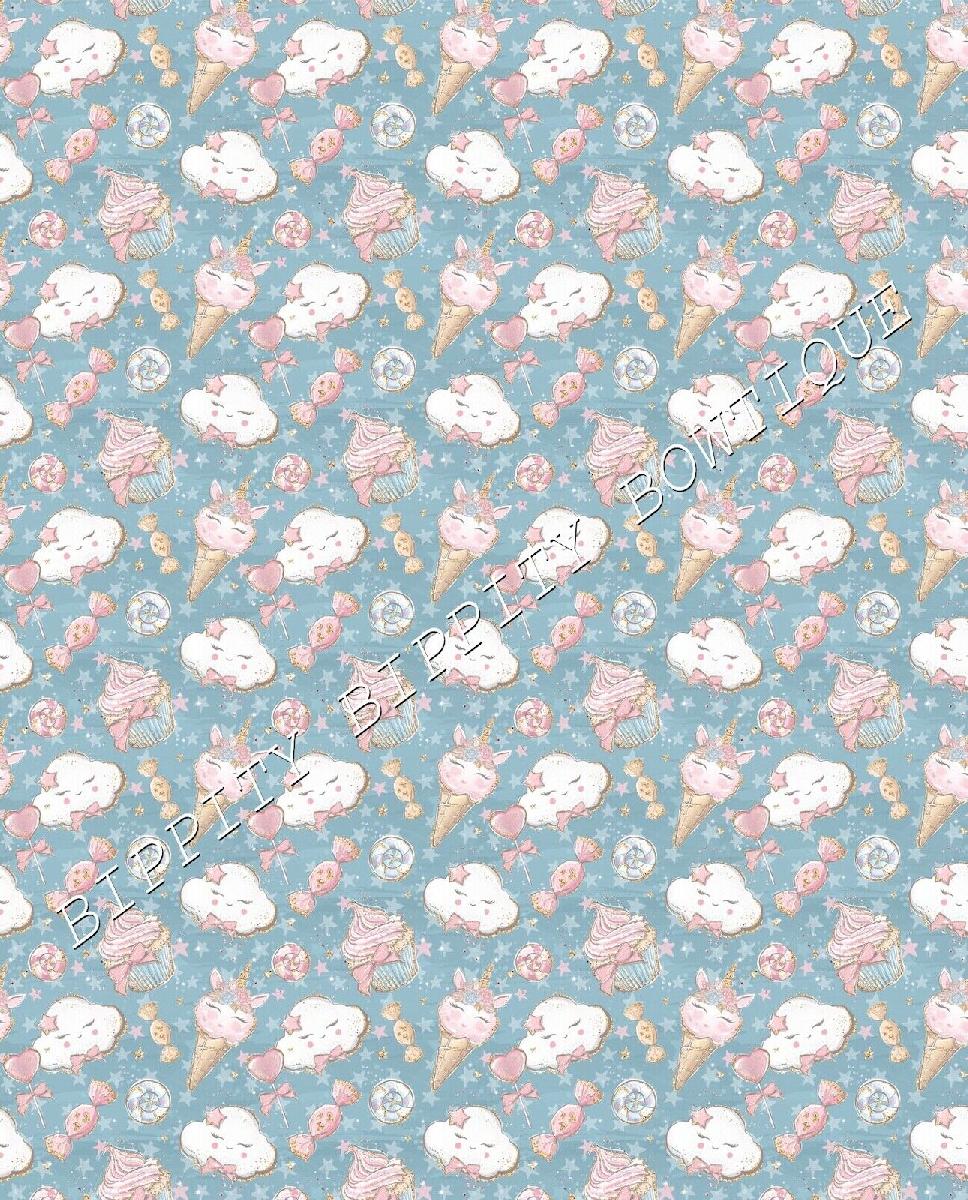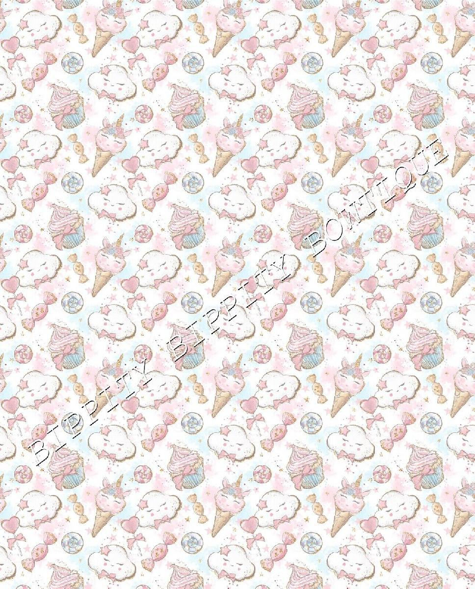 GORGEOUS "UNICORN CANDY FLOSS" PRINTED CANVAS FABRIC SHEET..HAIR BOWS, CRAFTS [ENDED]
