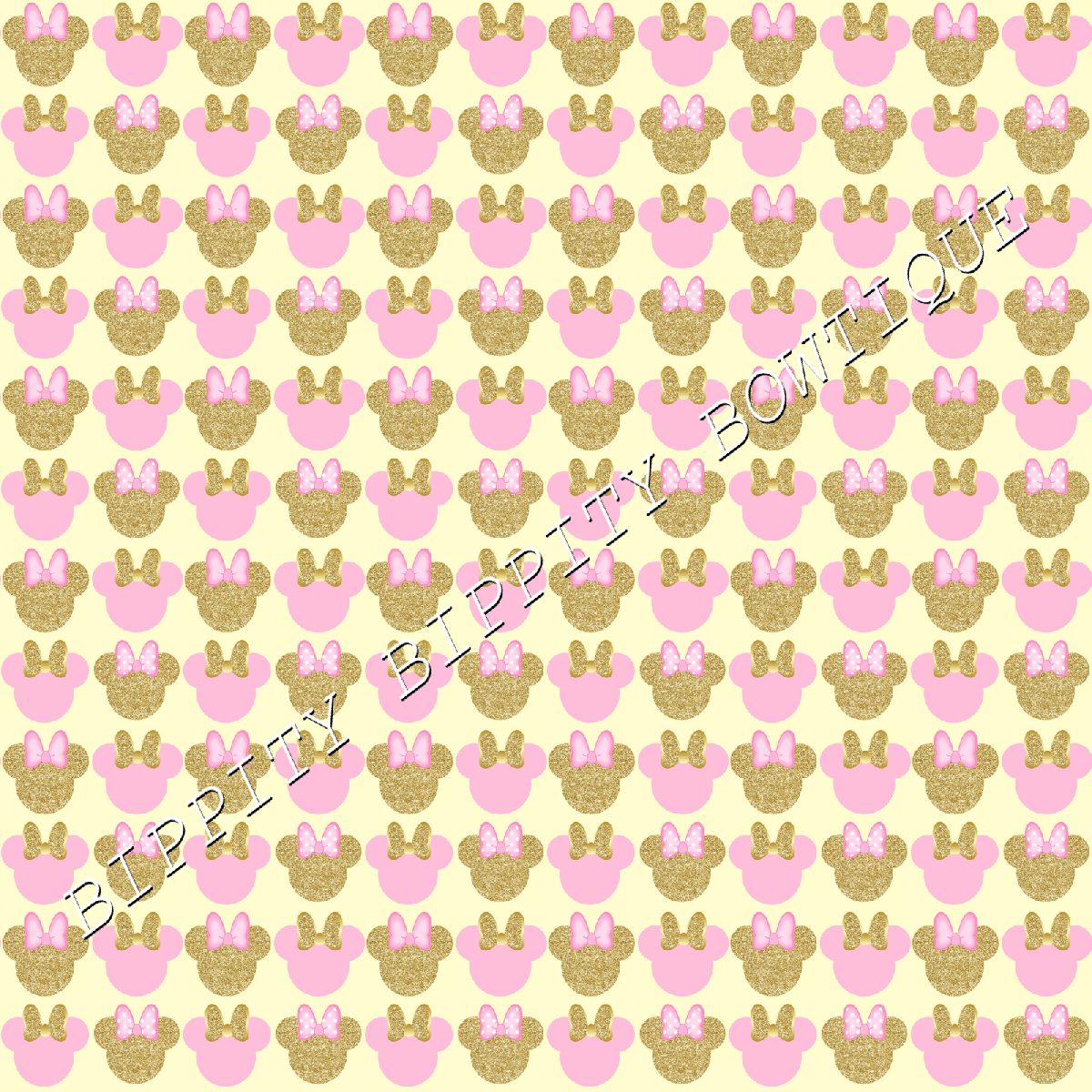 GORGEOUS PINK & GOLD "MINNIE HEADS" PRINTED FABRIC SHEET..HAIR BOWS GLITTER [ENDED]