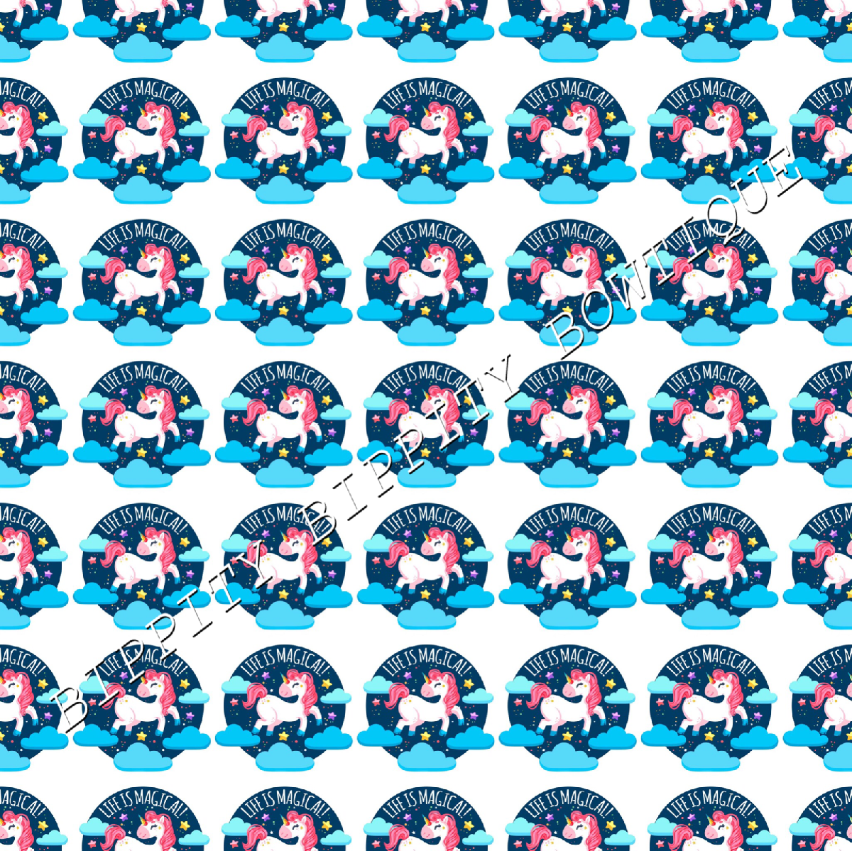 GORGEOUS "MAGICAL DREAMS UNICORNS" PRINTED FABRIC SHEET..HAIR BOWS, GLITTER, [ENDED]