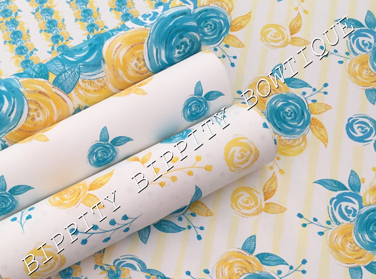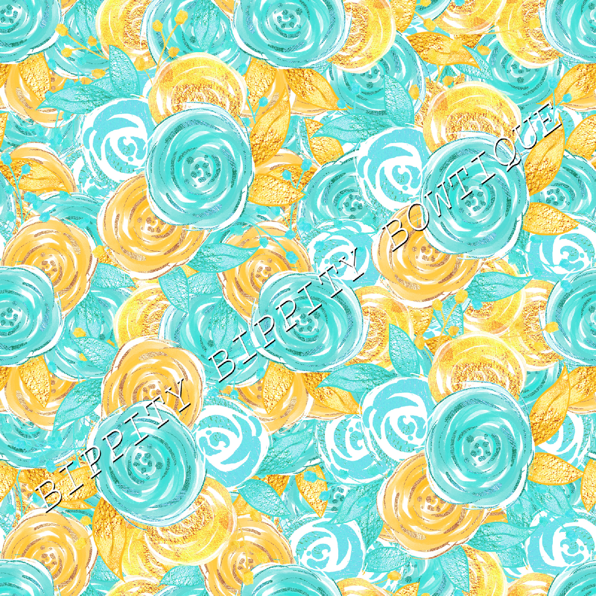 GORGEOUS "TURQUOISE & GOLD" FLORAL PRINTED FABRIC SHEET..HAIR BOWS, CRAFTS [ENDED]