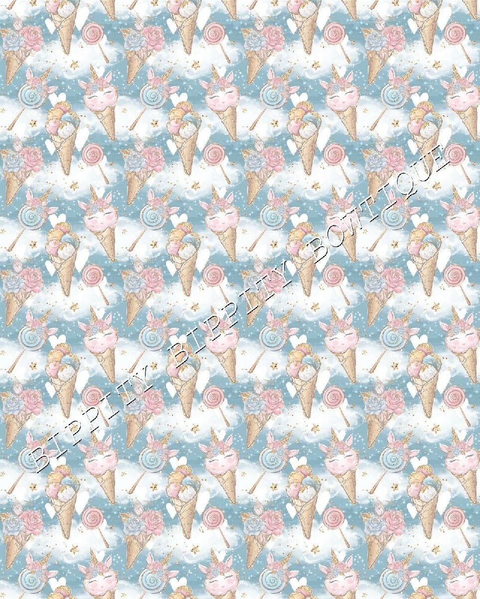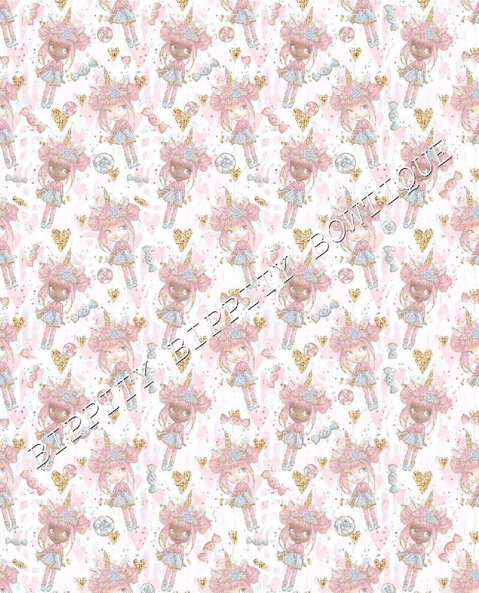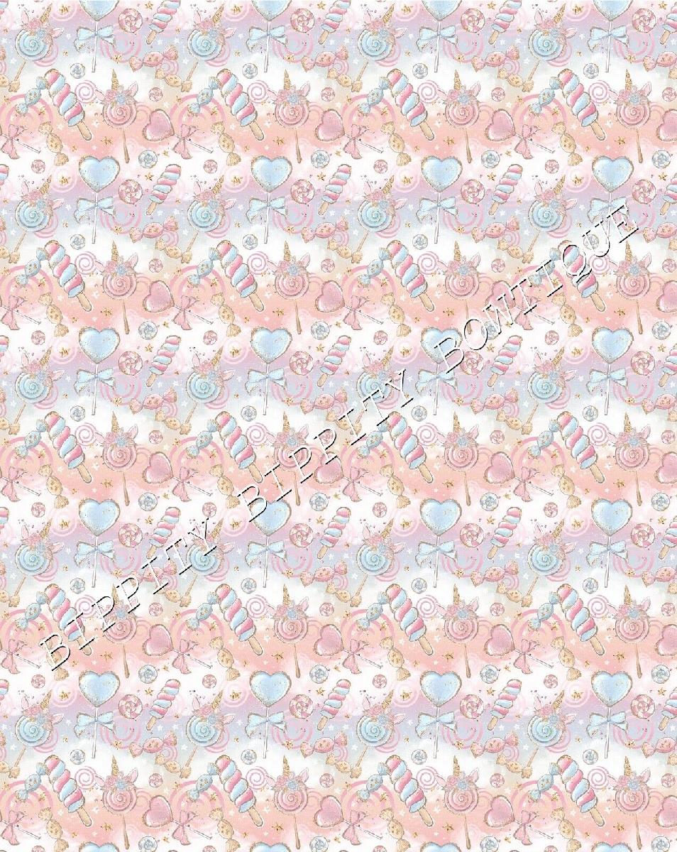 GORGEOUS "UNICORN CANDY FLOSS" PRINTED CANVAS FABRIC SHEET..HAIR BOWS, CRAFTS [ENDED]