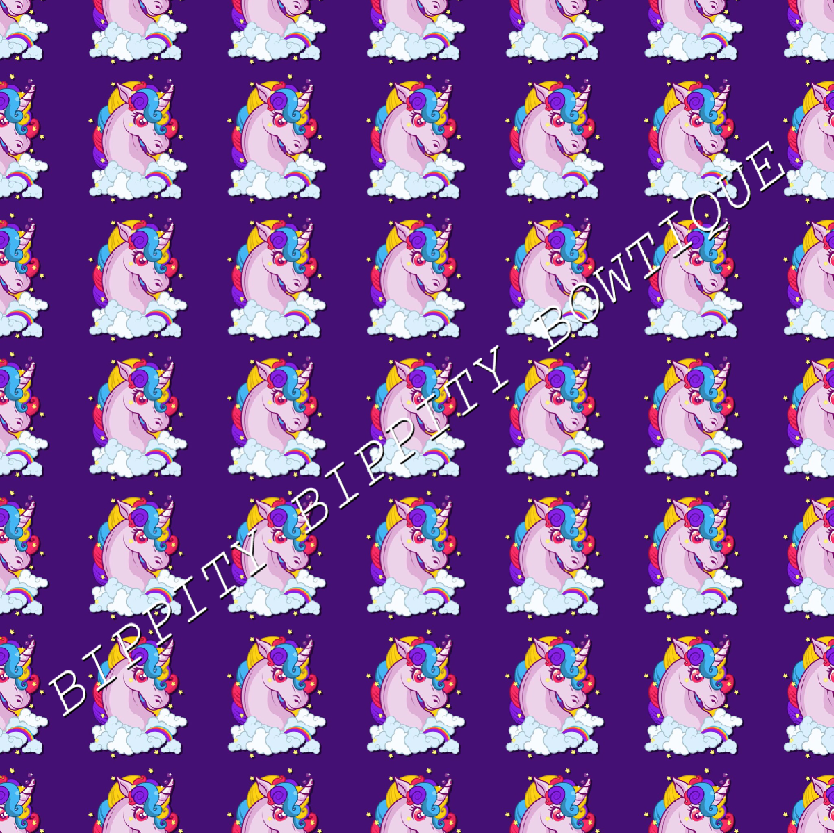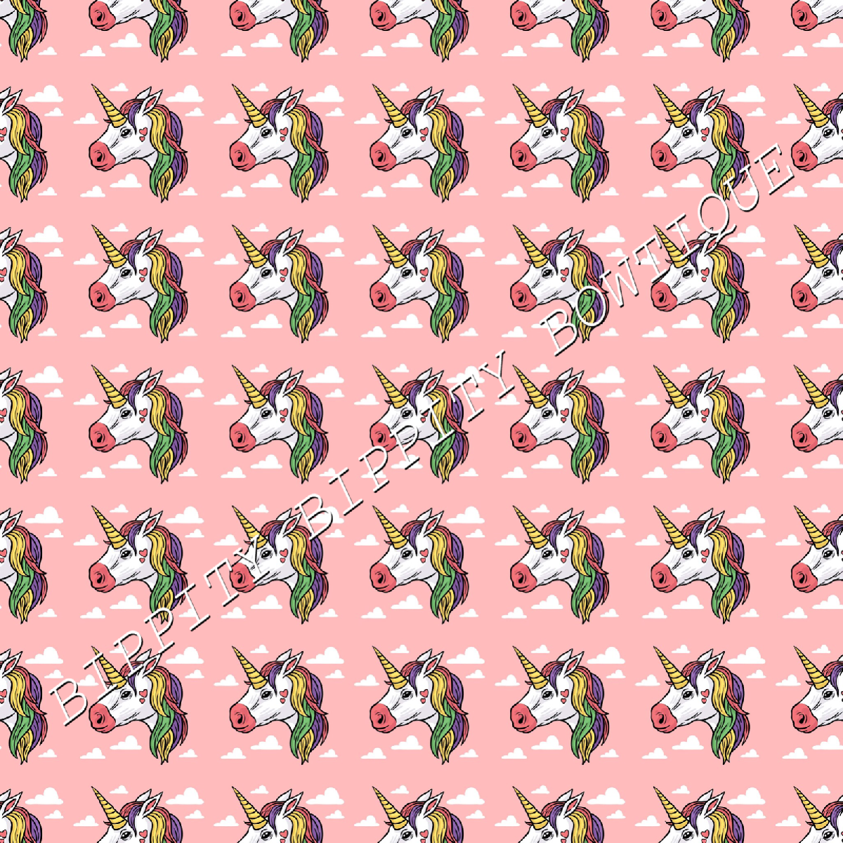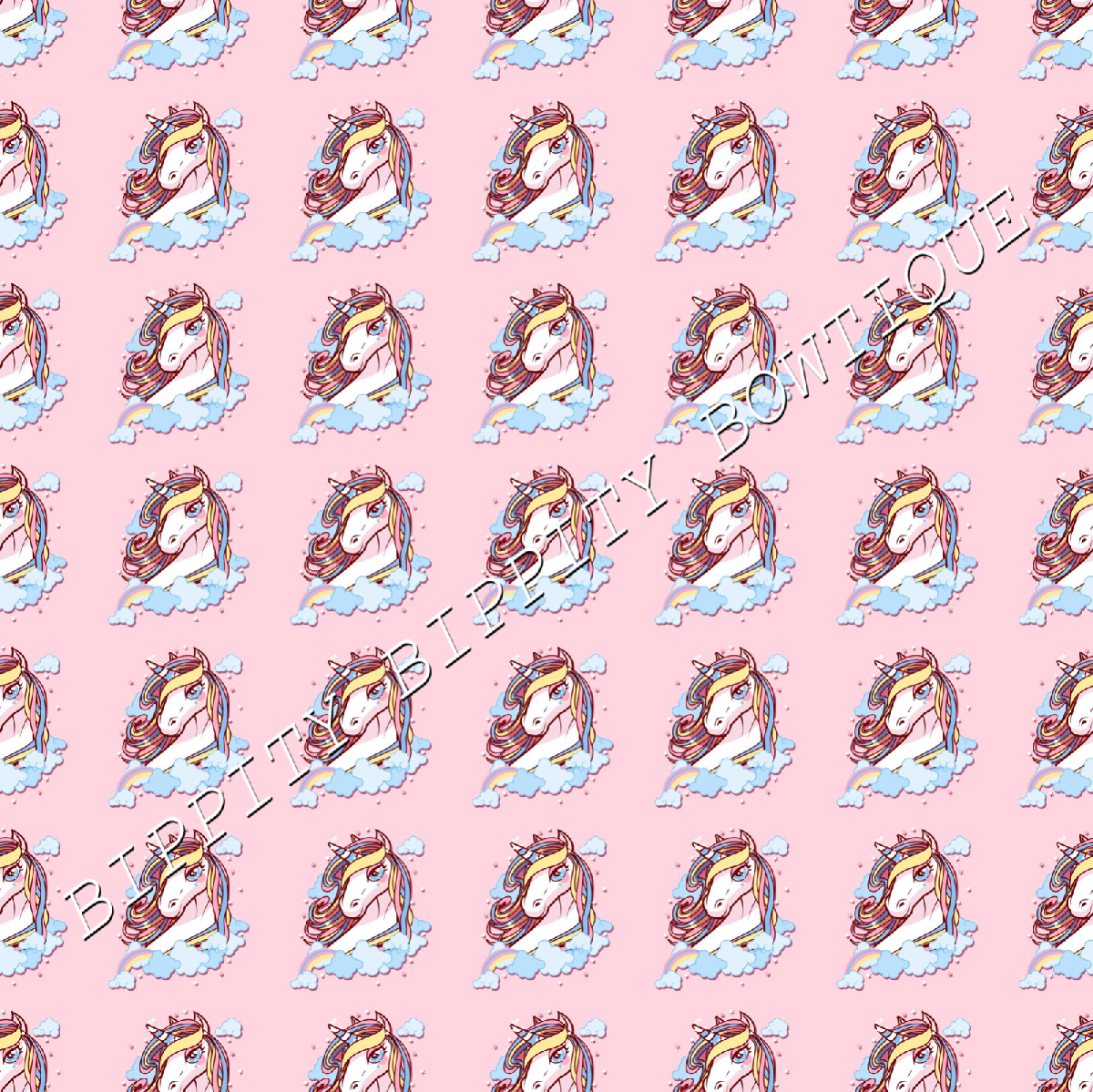 GORGEOUS" RAINBOW DREAMS UNICORNS" PRINTED FABRIC SHEET..HAIR BOWS, GLITTER, [ENDED]