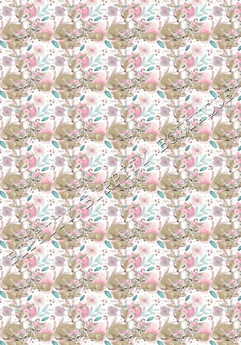 GORGEOUS "A MOTHERS LOVE" DEER/SWANS FLORAL PRINTED FABRIC SHEET.HAIR BOWS, [ENDED]