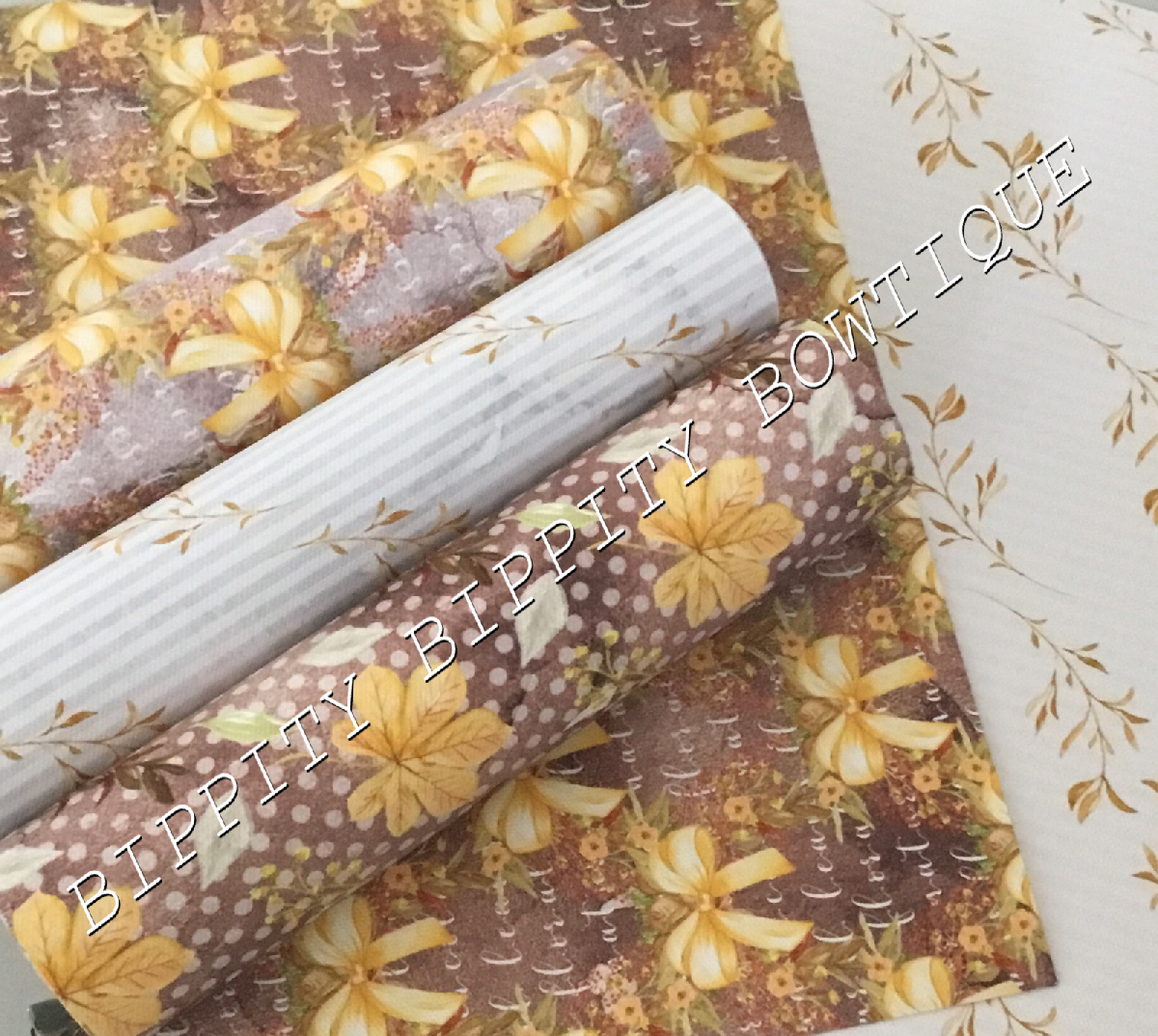 GORGEOUS " GOLD AUTUMN BOW" PRINTED FABRIC SHEET..HAIR BOWS, CRAFTS [ENDED]