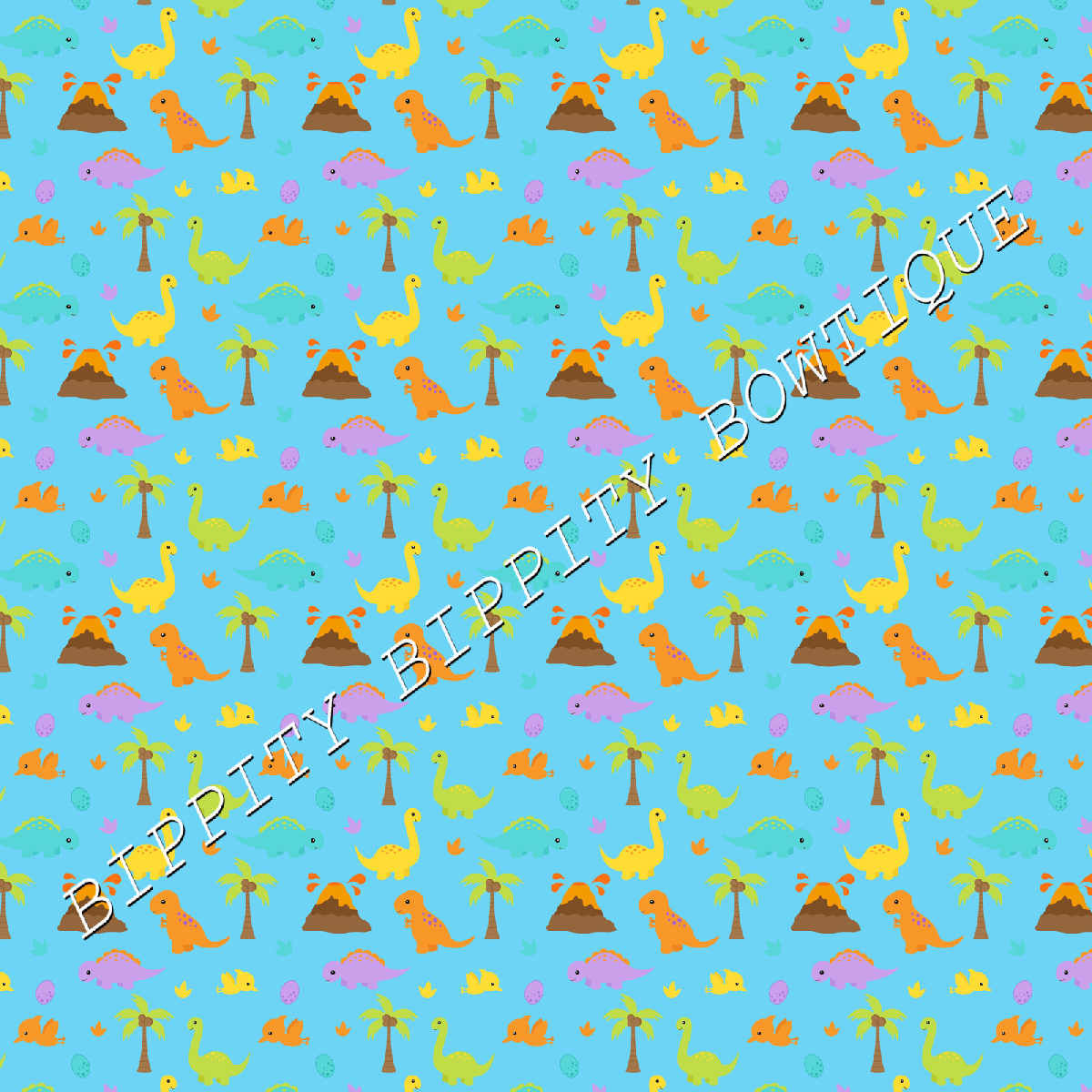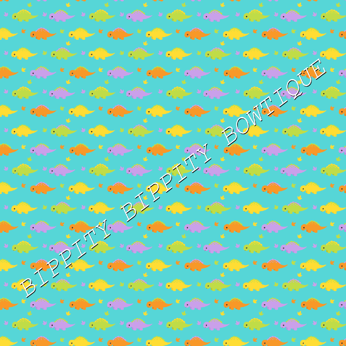 GORGEOUS "CUTE DINOSAURS" PRINTED FABRIC SHEET.. BOWS,GLITTER [ENDED]