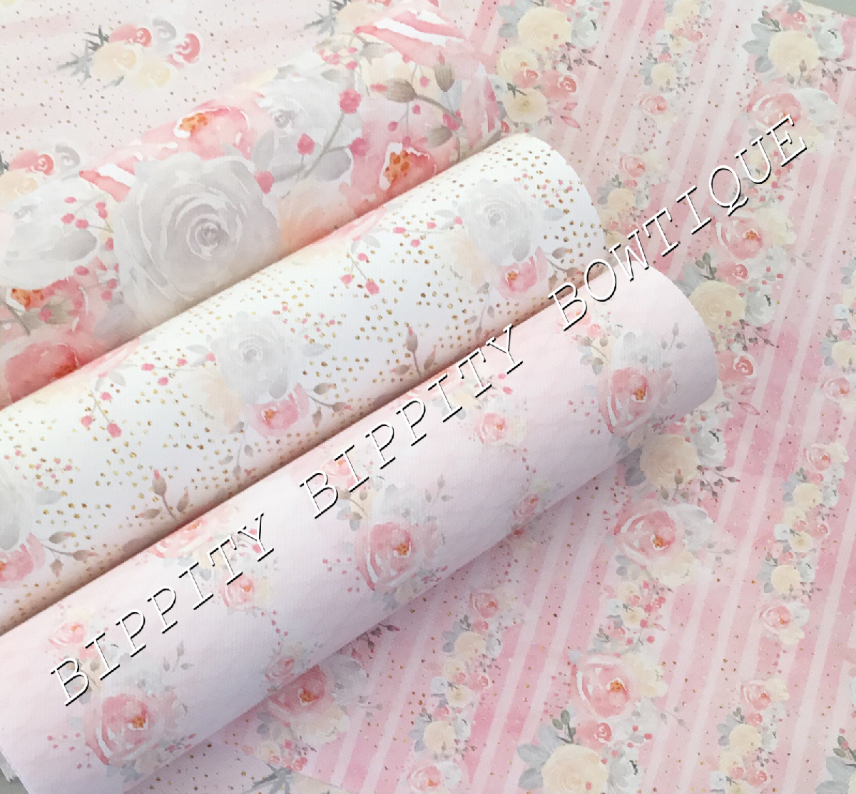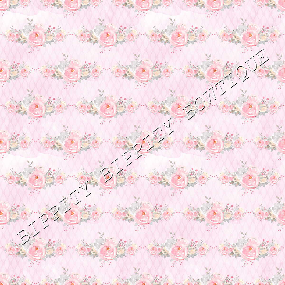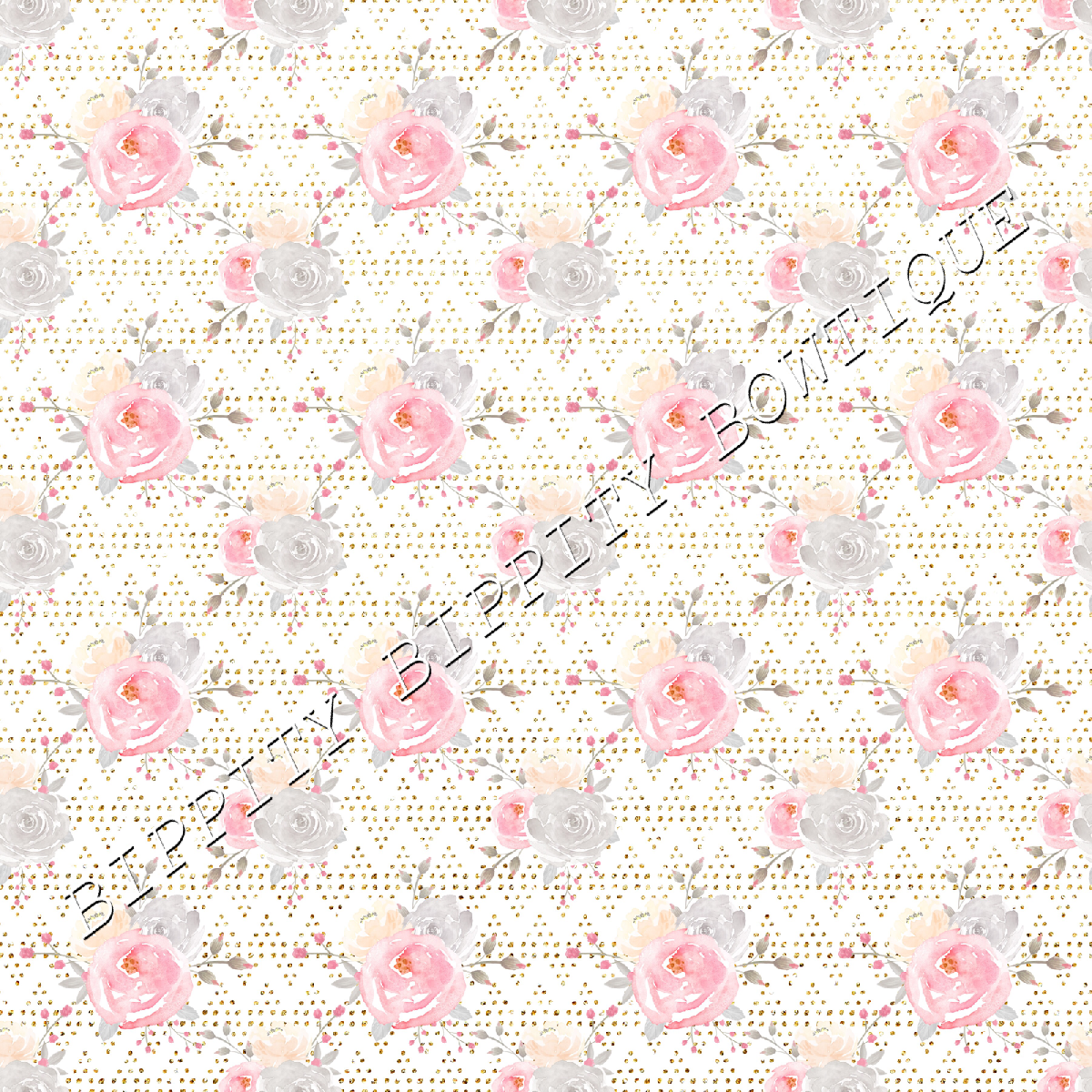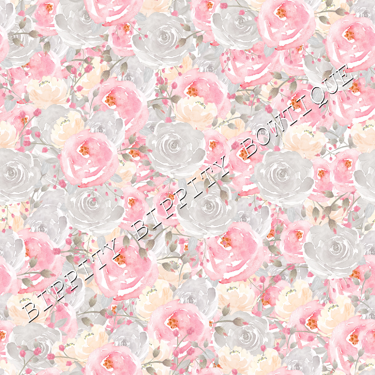 GORGEOUS "ROMANTIC" PINK & GREY FLORAL PRINTED FABRIC SHEET..HAIR BOWS, CRAFTS [ENDED]