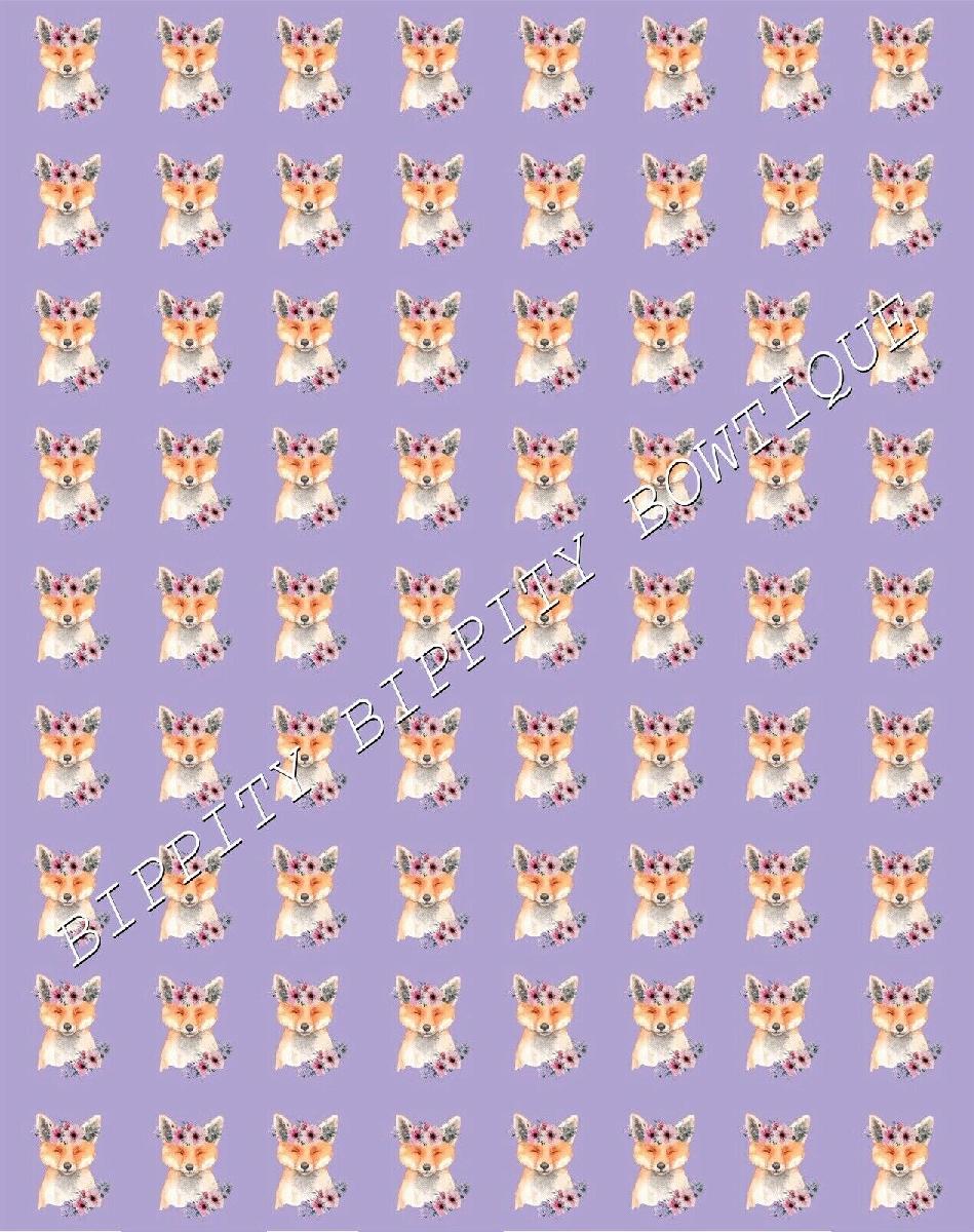 NEW "FLORAL WOODLAND" LAVENDAR PRINTED FABRIC SHEET.HAIR BOWS, EXCLUSIVE [ENDED]