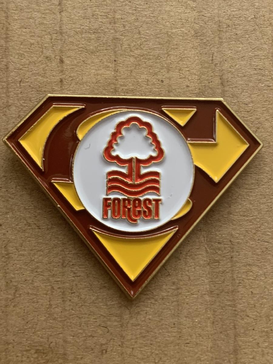 NOTTINGHAM FOREST PIN BADGE - MADE OF ZINC SUPERBLY ENAMELLED - SUPER HERO BACKGROUND [ENDED]
