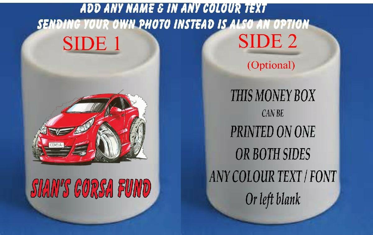 VAUXHALL CORSA PERSONALISED MONEY BOX VARIOUS MODELS KOOLART GIFT GIFT SAVE [ENDED]