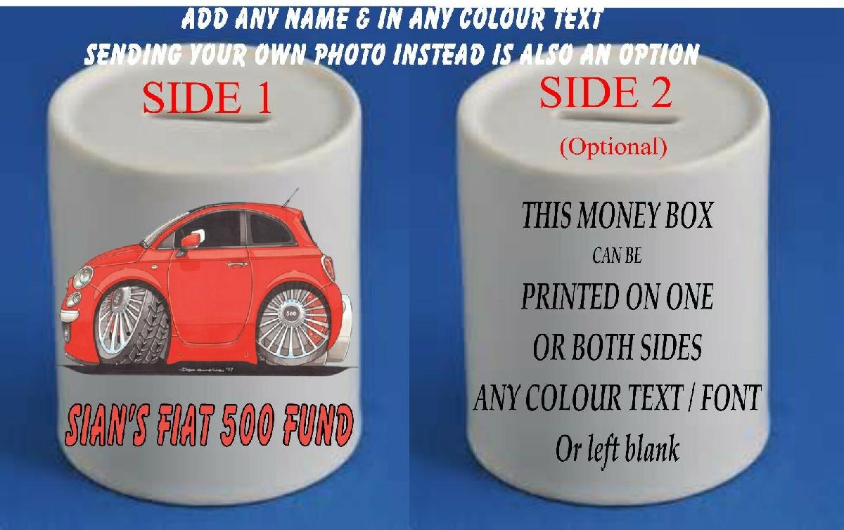 FIAT 500 PERSONALISED MONEY BOX MODELS CAR KOOLART GIFT CUP VEHICLE [ENDED]