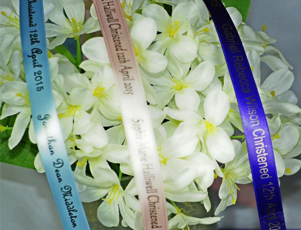 PERSONALISED RIBBON PRINTED 15MM X 2 METRES CHRISTENING WEDDING BIRTHDAY BABY [ENDED]