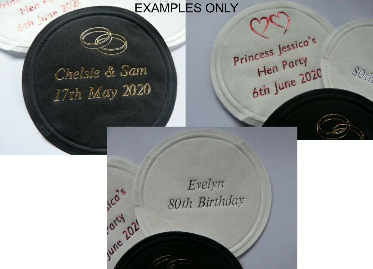 PERSONALISED PAPER COASTERS 100 TISSUE WEDDING BIRTHDAY ANNIVERSARY PARTY DRINK [ENDED]