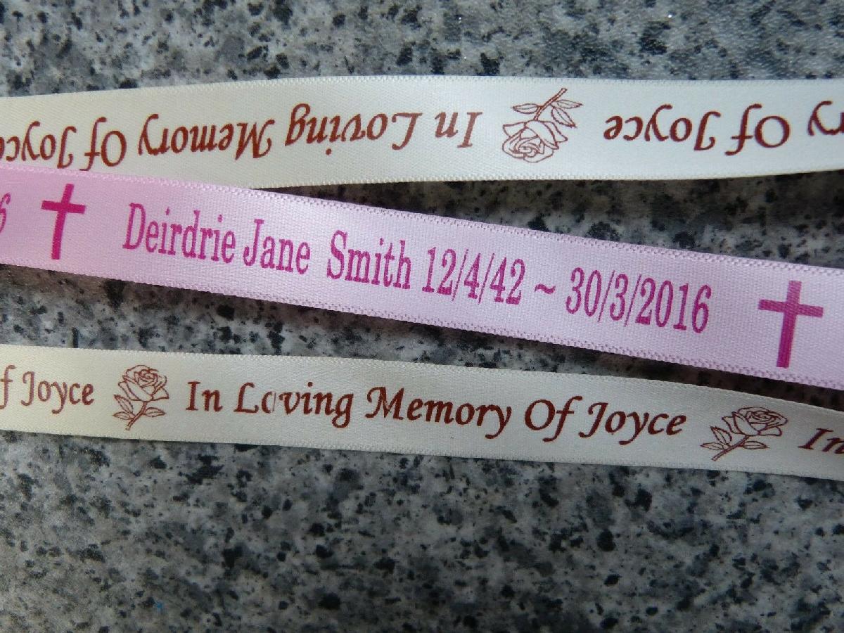 PERSONALISED RIBBON FOR FUNERAL FLOWERS 15MM WIDE MEMORIAL REMEMBERANCE [ENDED]