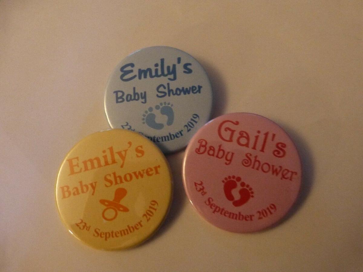 PERSONALISED BABY SHOWER ROSETTE OR BADGE MUM GIFT RIBBON DESIGN COLOURS GIFT [ENDED]