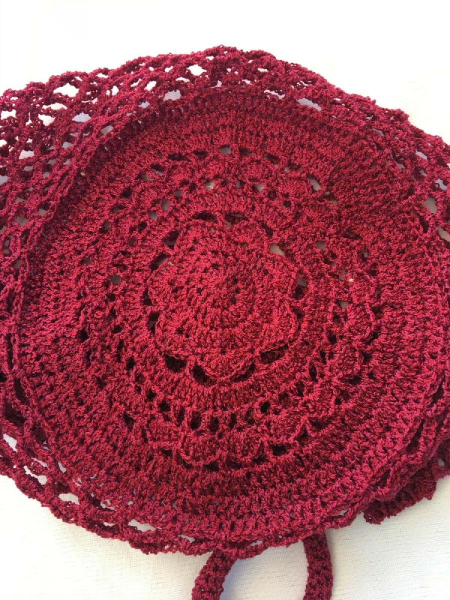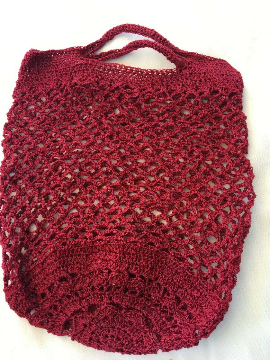 HANDMADE 14"X 11 NET SHOPPING BAG BURGUNDY CHIC BEACH HANDBAG MARKET BASKET
