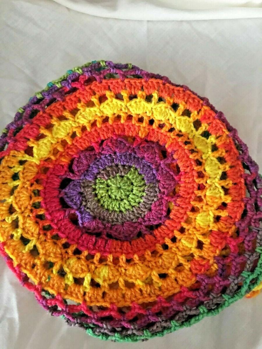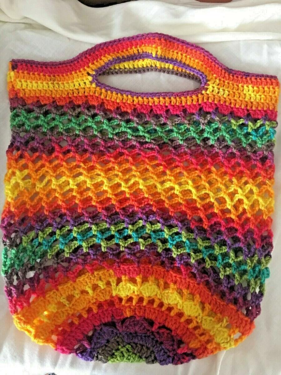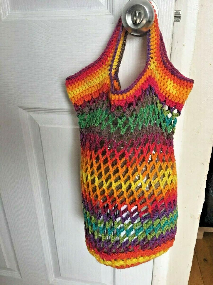 HANDMADE NET SHOPPING BAG RAINBOW CHIC BEACH HANDBAG MARKET BASKET 15"X13"