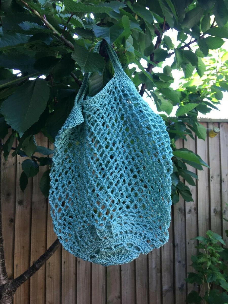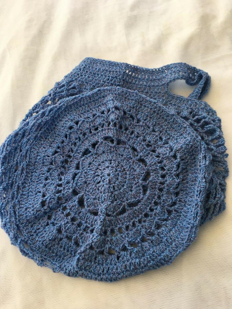 HANDMADE 14"X 11" NET SHOPPING BAG BLUE CHIC BEACH HANDBAG MARKET BASKET
