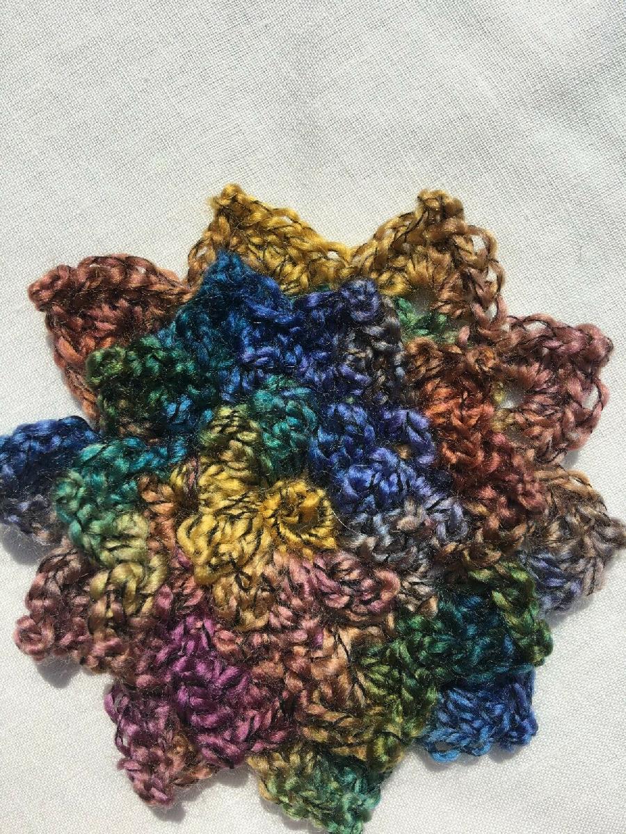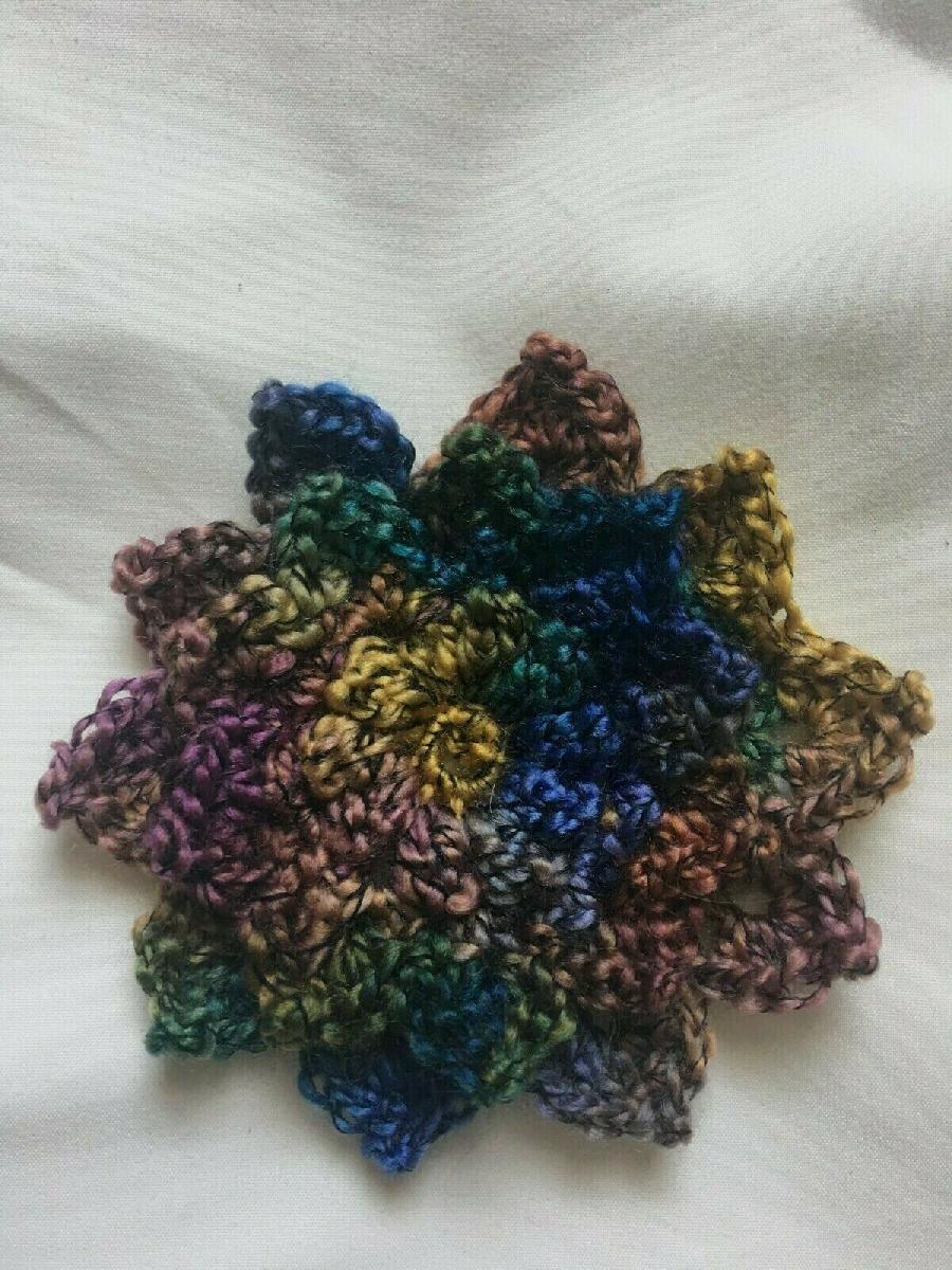 HANDMADE CROCHETED FLOWERS ACRYLIC MUSTARD PURPLE YELLOW GREEN MELANGE 13 CM, 5"