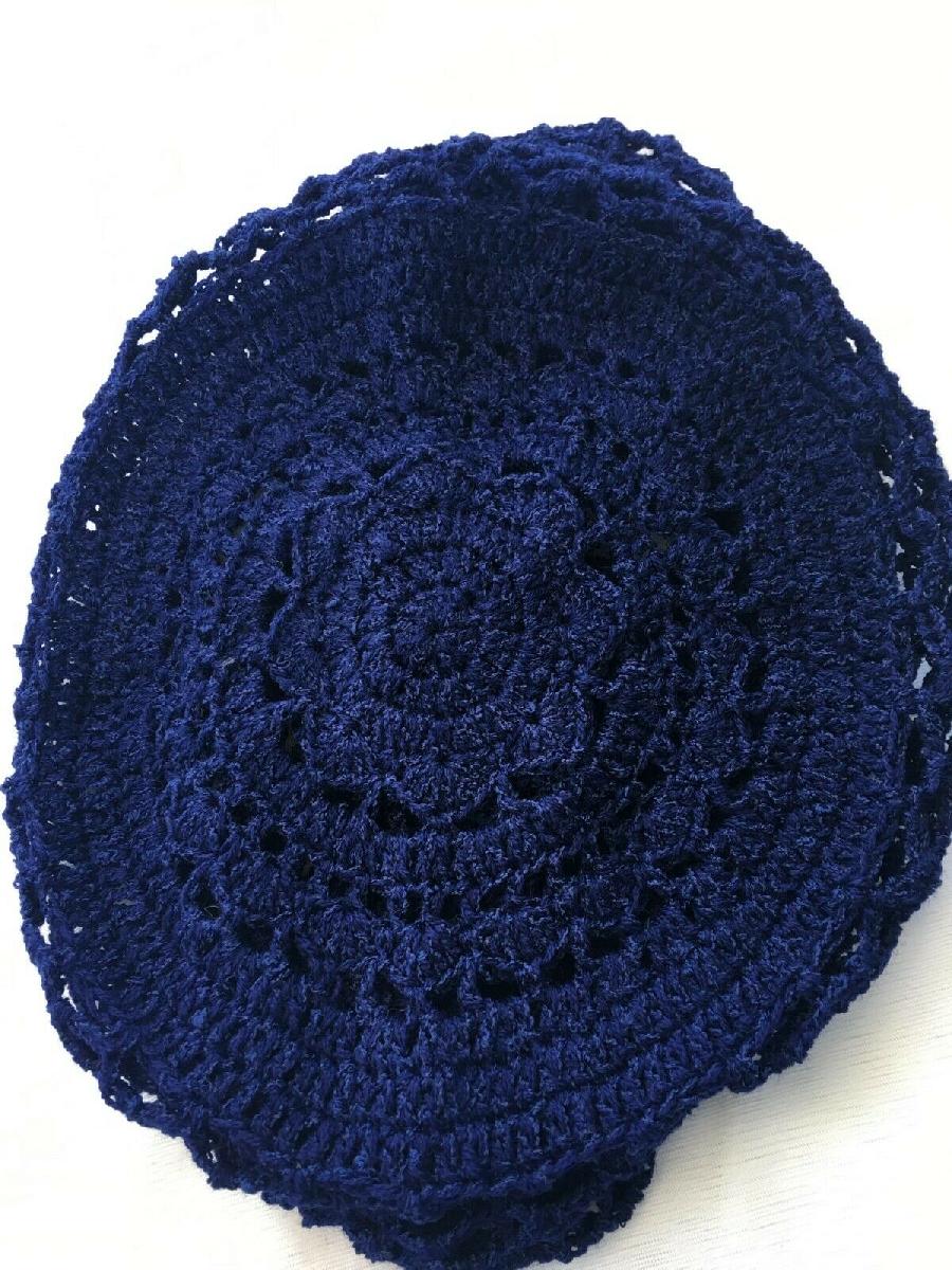 HANDMADE 14"X 11" NET SHOPPING BAG NAVY CHIC BEACH HANDBAG MARKET BASKET