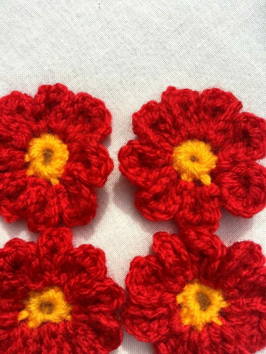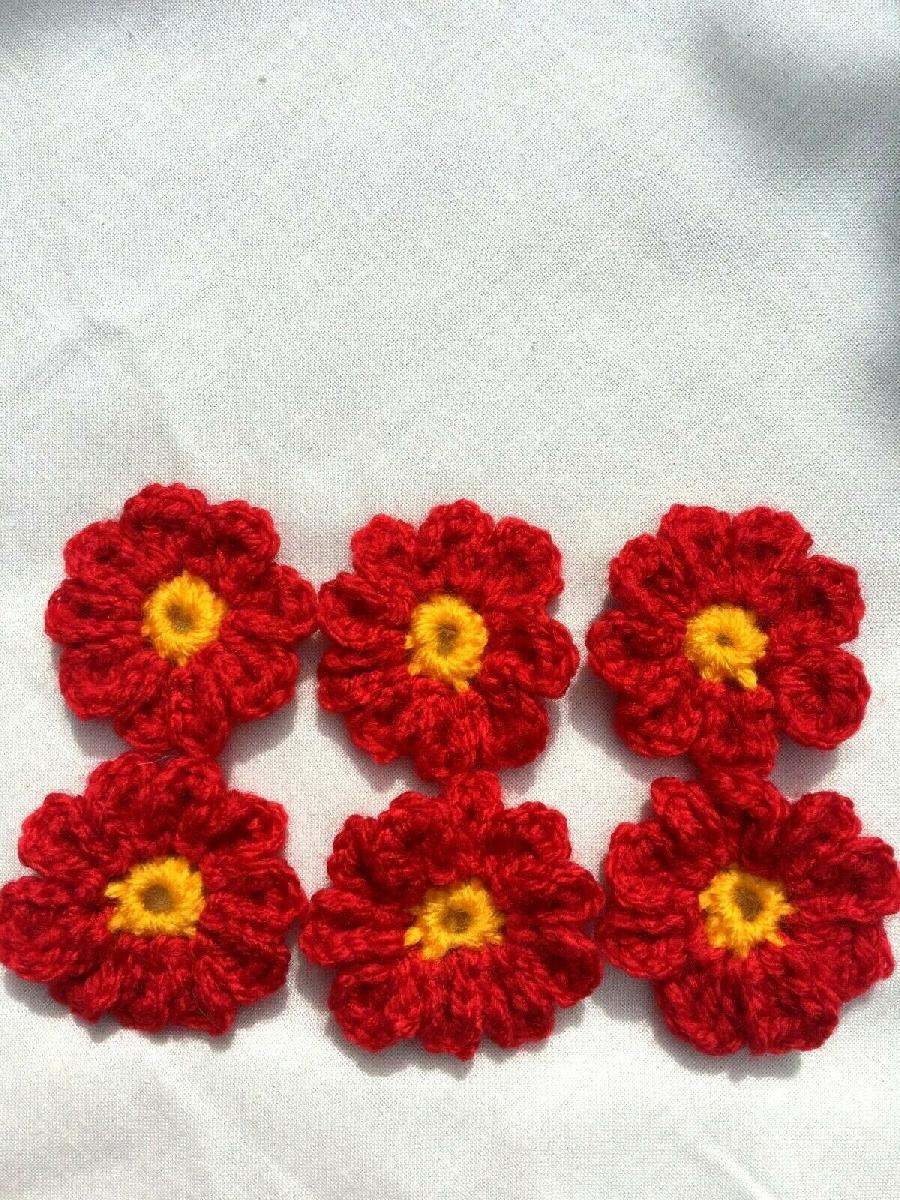 HANDMADE CROCHETED LITTLE FLOWERS ACRYLIC RED 4 CM PACK OFF 6